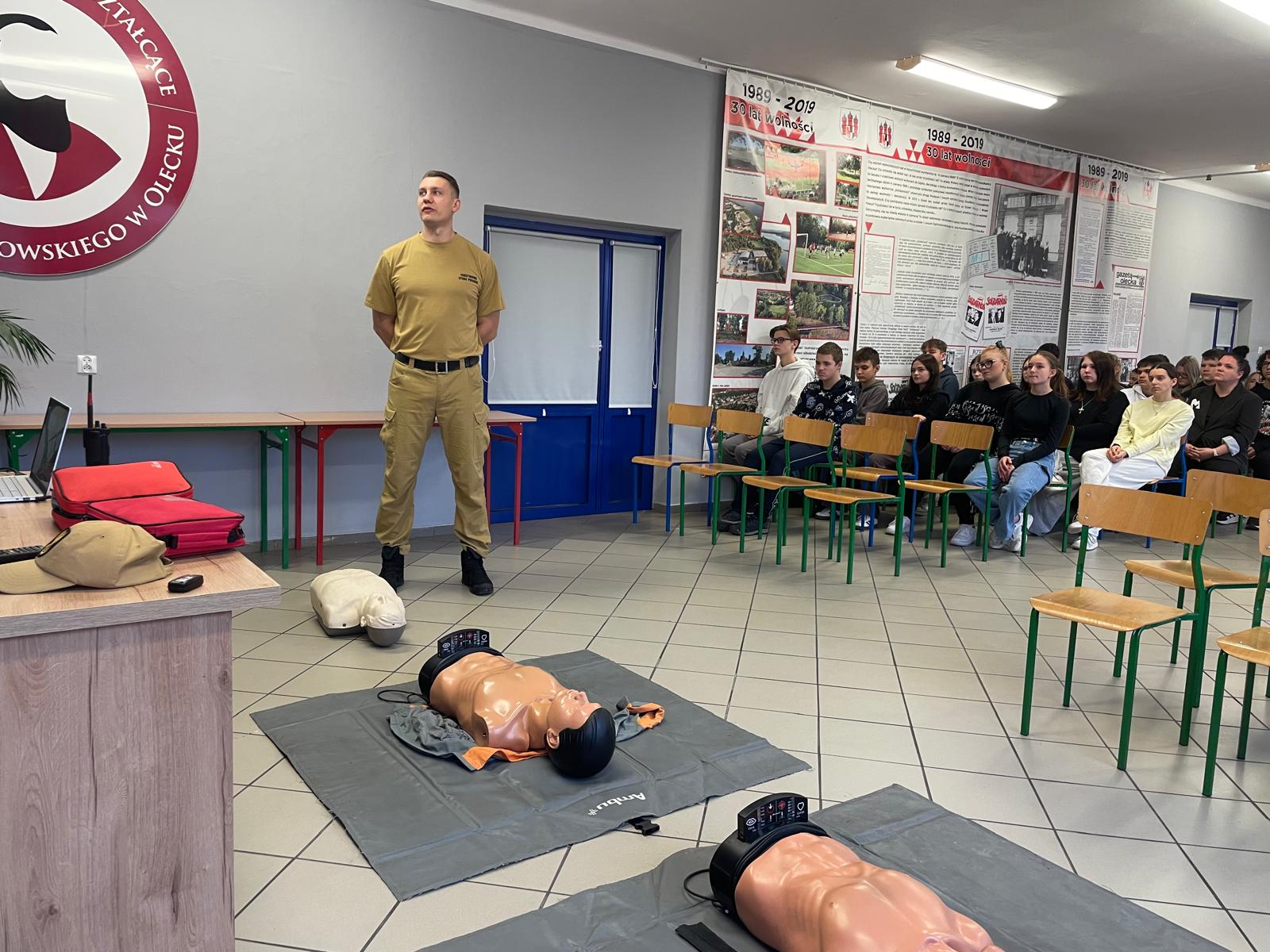 12 listopada 2024 roku w I Liceum Ogólnokształcącym im. Jana Kochanowskiego w Olecku odbyła się niezwykła prelekcja, przygotowana przez strażaków z Komendy Powiatowej Państwowej Straży Pożarnej w Olecku. Spotkanie było poświęcone Kwalifikowanej Pierwszej Pomocy (KPP), a jego głównym celem było przekazanie uczniom wiedzy oraz praktycznych umiejętności, które mogą okazać się kluczowe w sytuacjach zagrożenia życia.