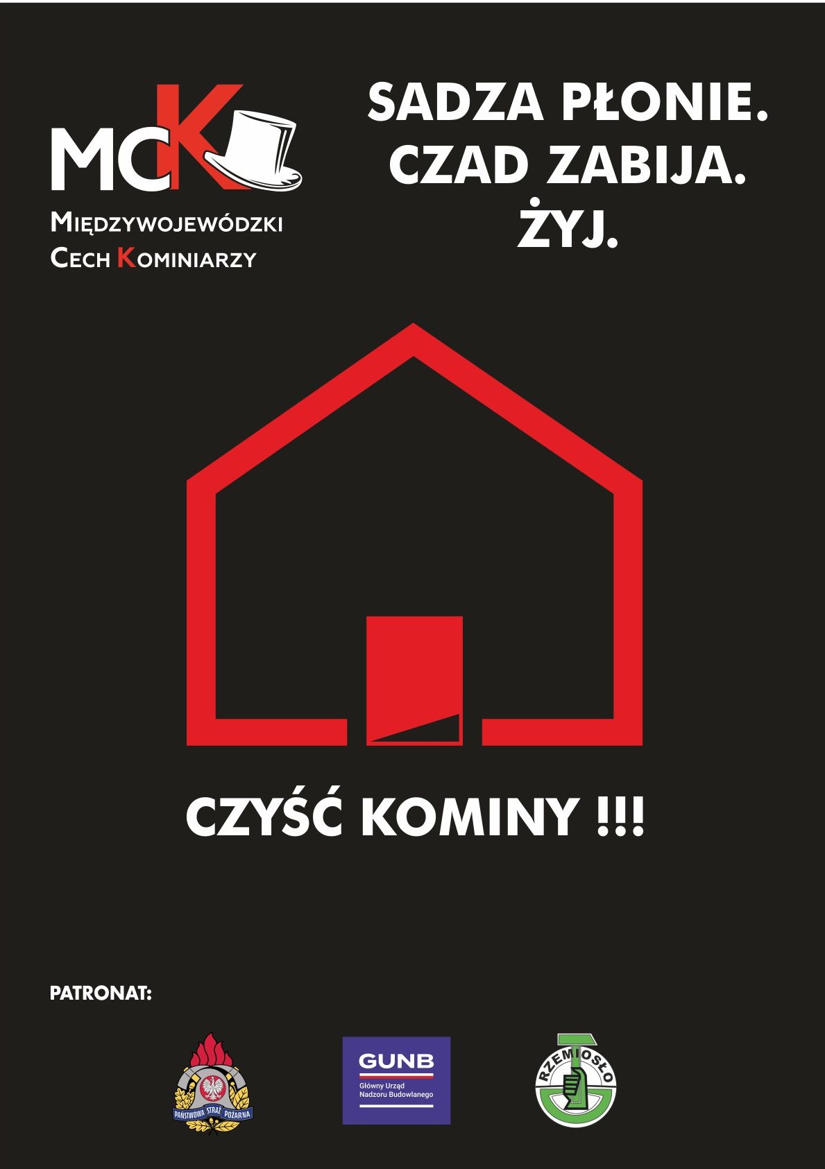 Kampania społeczna "Sadza płonie. Czad zabija. Żyj! " organizowana przez Międzywojewódzki Cech Kominiarzy pod Honorowym Patronatem Państwowej Straży Pożarnej, Głównego Urzędu Nadzoru Budowlanego, Związku Rzemiosła Polskiego jest kontynuacją poprzednich kampanii społecznych „Czyszczone kominy to mniejszy smog” oraz "Zaproś kominiarza".