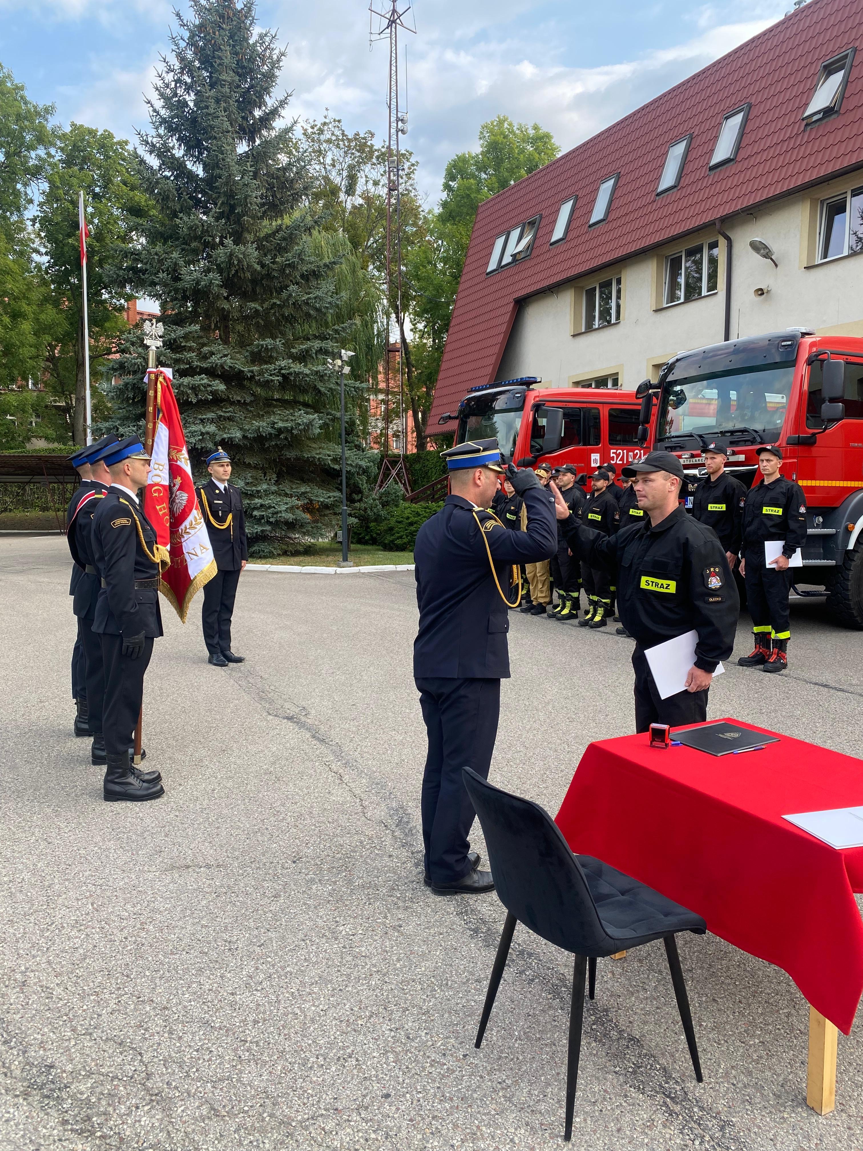 Ślubowanie nowo przyjętych funkcjonariuszy KP PSP w Olecku