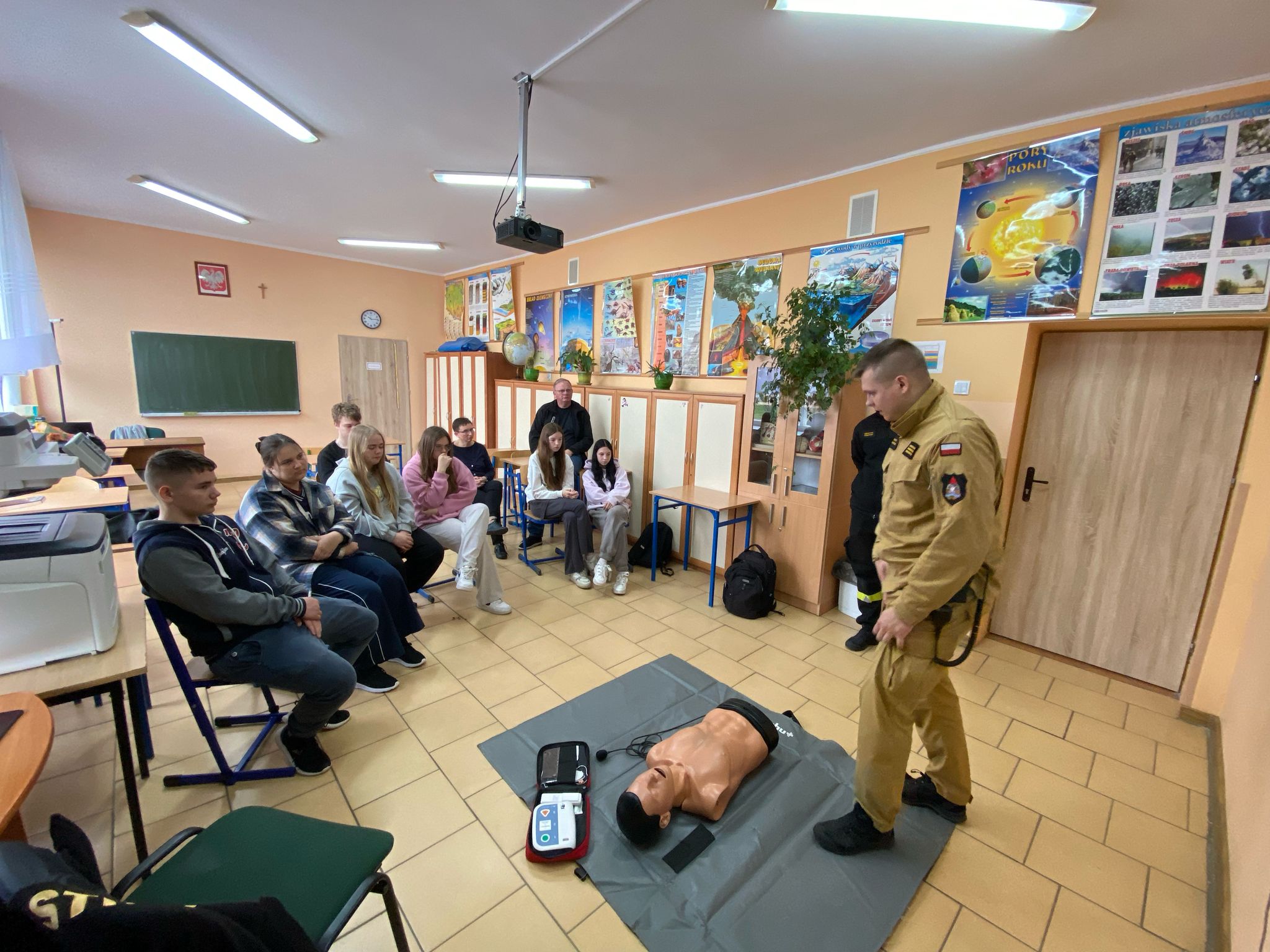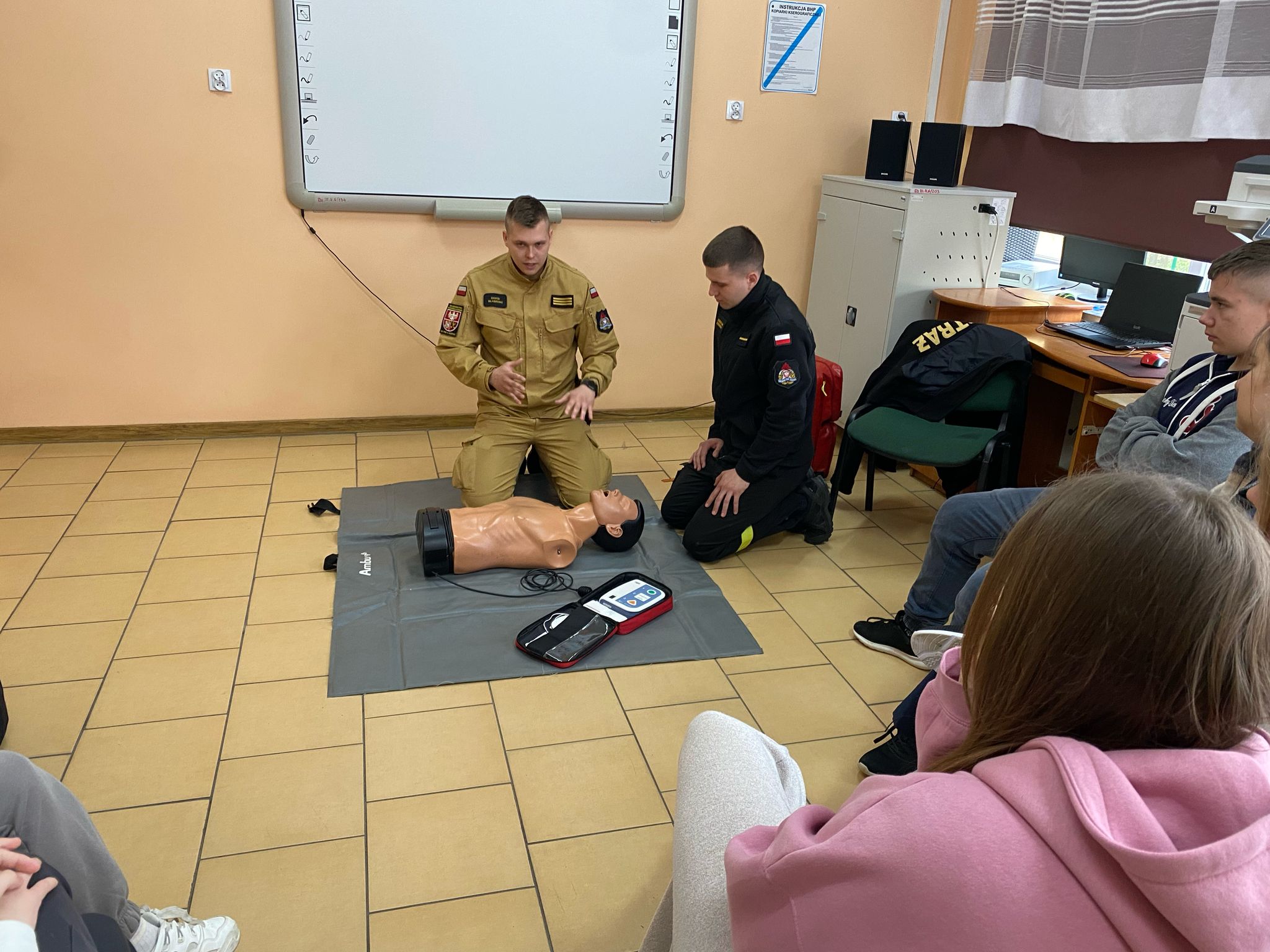 Podczas spotkania funkcjonariusze zaprezentowali m.in. sposoby oceny stanu poszkodowanego, procedury resuscytacji krążeniowo-oddechowej (RKO) oraz prawidłowe wykorzystanie defibrylatora AED. Uczniowie mieli również możliwość samodzielnego przećwiczenia podstawowych technik ratowniczych pod czujnym okiem strażaków.
