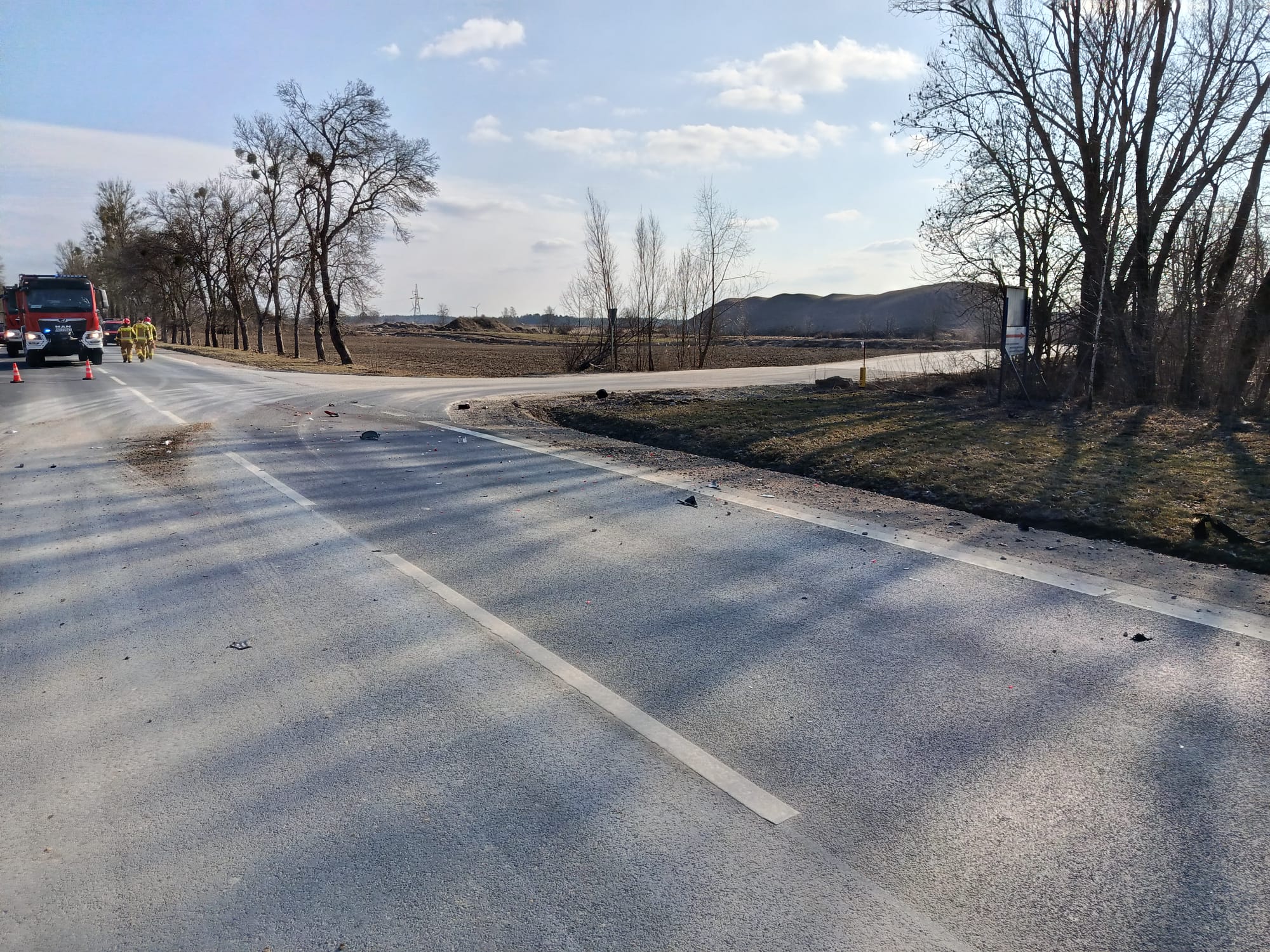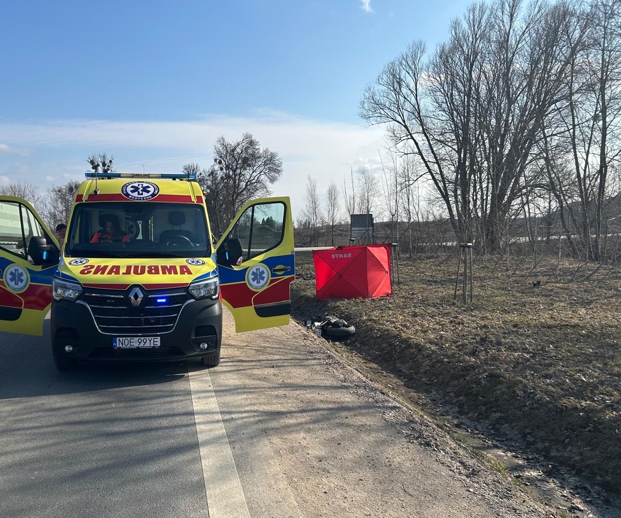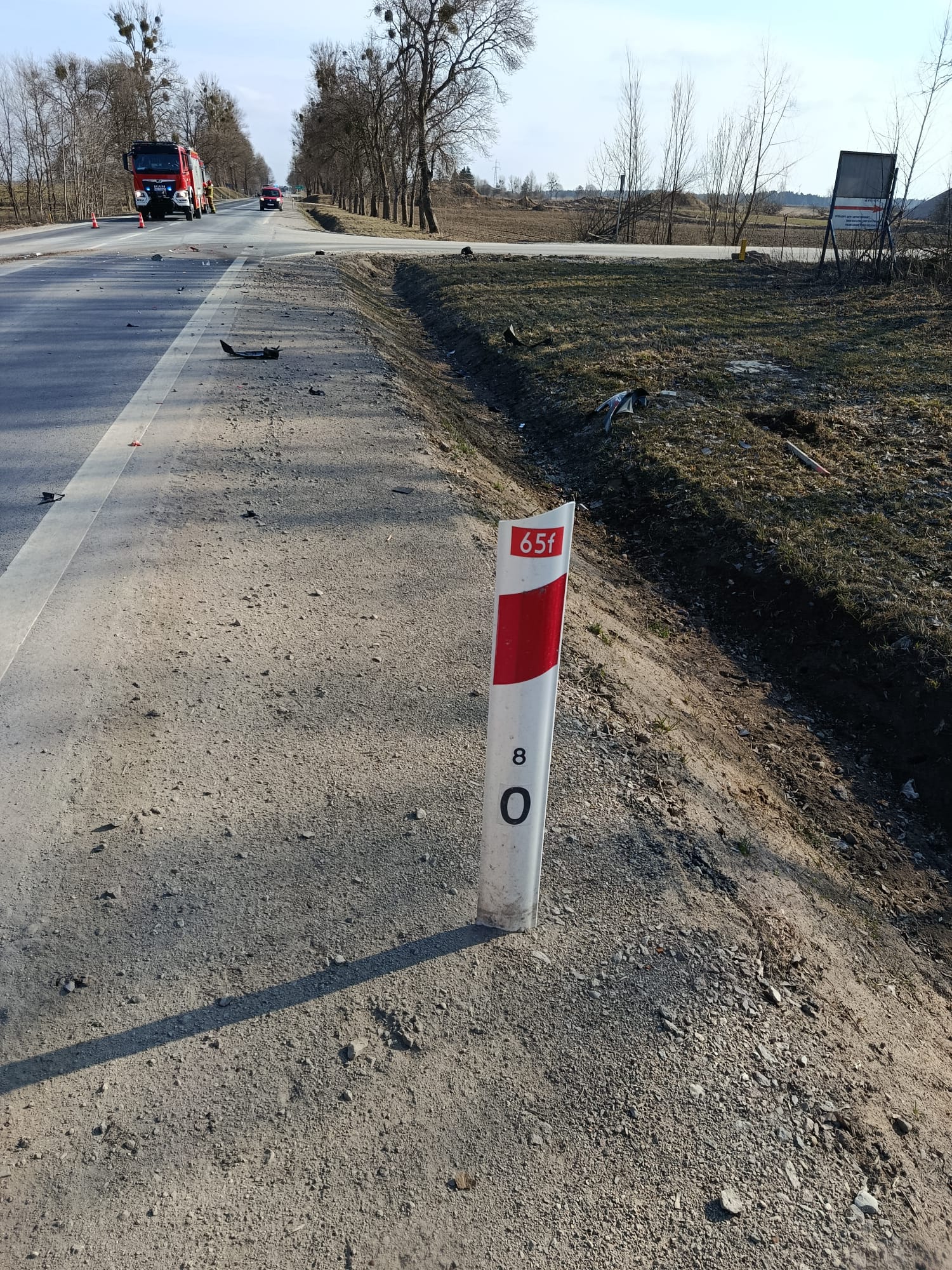 W dniu dzisiejszym, 18.03.2026 r. o godzinie 13:27, do Stanowiska Kierowania Komendanta Powiatowego PSP w Olecku wpłynęło zgłoszenie o wypadku drogowym z udziałem motocyklisty oraz pojazdu ciężarowego na drodze krajowej DK65 na odcinku Olecko – Golubki.