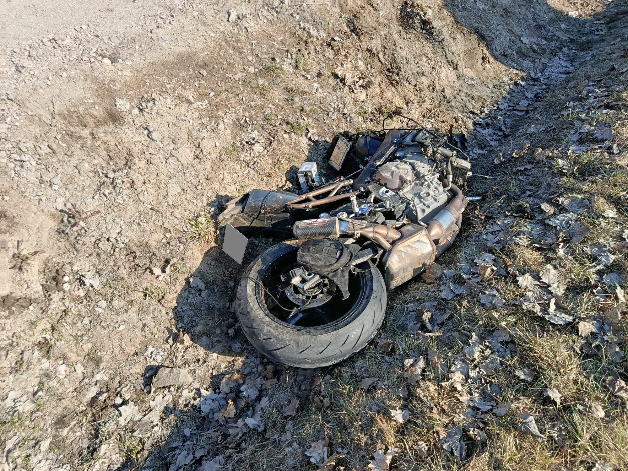 Po przybyciu na miejsce zdarzenia zastępów straży pożarnej kierujący działaniem ratowniczym potwierdził zgłoszenie. Kierujący motocyklem marki BMW uderzył w tył naczepy samochodu ciężarowego. Obecny na miejscu ratownik medyczny stwierdził zgon mężczyzny.