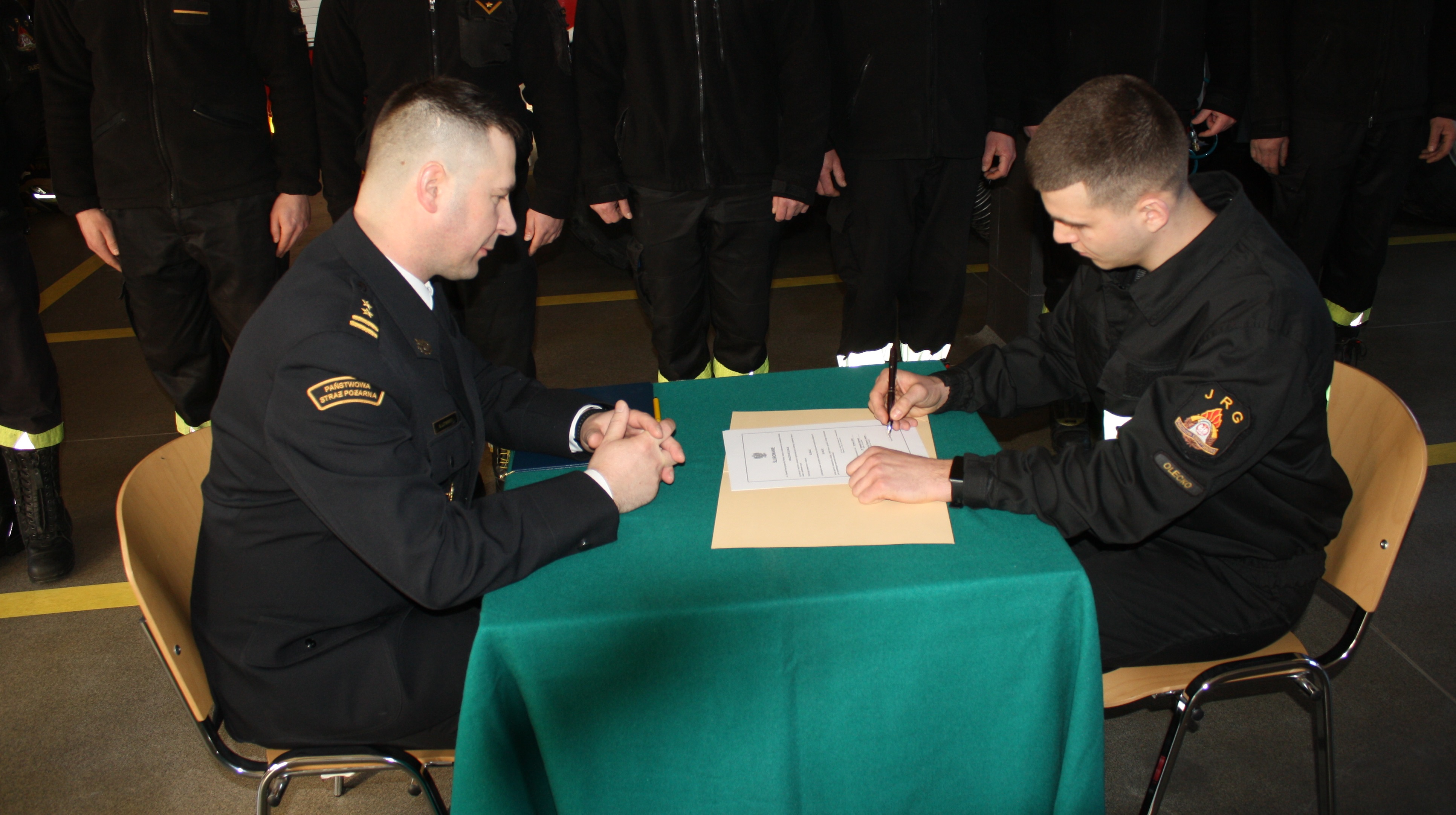 W dniu 16 marca 2023 r. w Komendzie Powiatowej Państwowej Straży Pożarnej w Olecku podczas uroczystej zbiórki, odbyło się ślubowanie strażaków wstępujących w szeregi PSP. Str. Sebastian Dębowski oraz str. Arkadiusz Mieńkowski w obecności załogi, złożyli uroczyście rotę strażackiego ślubowania. Ślubowanie przyjął Komendant Powiatowy PSP w Olecku - bryg. Sławomir Litwinko.