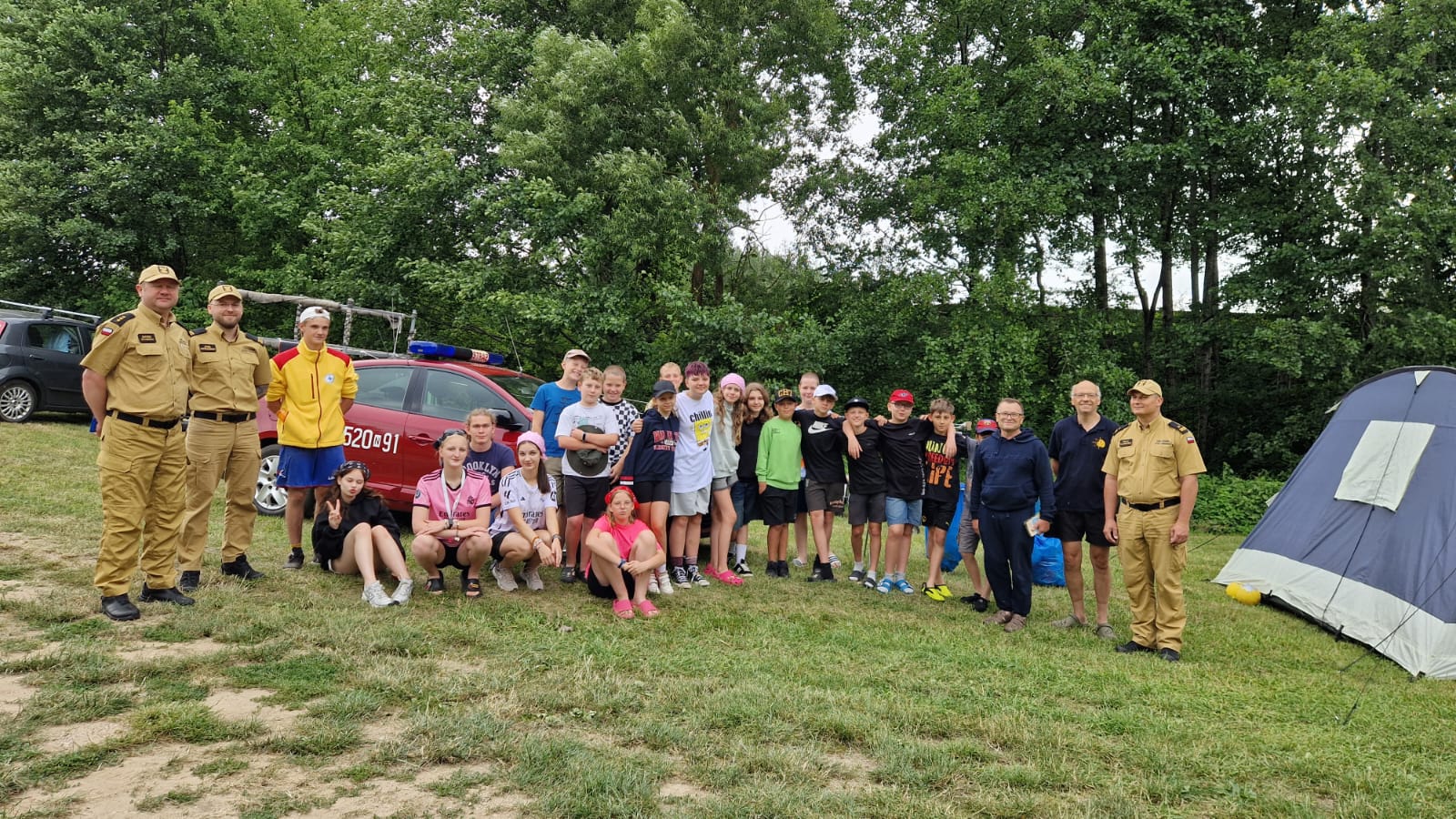 Funkcjonariusze sprawdzili stan zabezpieczenia obozowiska, wdrożenie zasad bezpieczeństwa oraz przeprowadzili praktyczną ocenę organizacji i warunków ewakuacji. Wizyta była również okazją do przeprowadzenia zajęć edukacyjnych, dotyczących bezpiecznego przebywania nad wodą oraz postępowania w sytuacjach zagrożeń, takich jak pożary, niebezpieczne wyładowania atmosferyczne, intensywne opady deszczu oraz silne podmuchy wiatru.