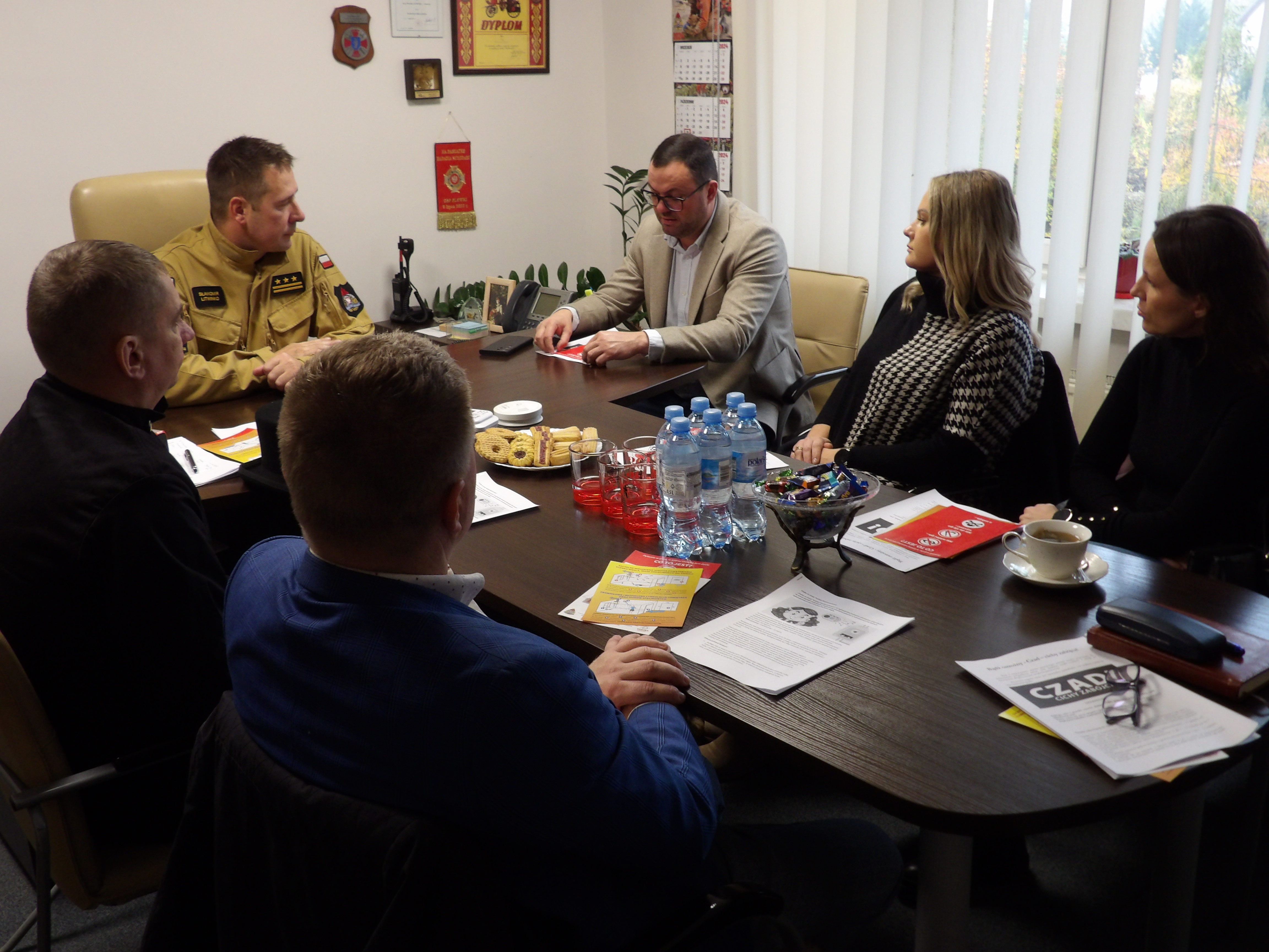 We wtorek 29 października 2024 r. odbyło się spotkanie poświęcone bezpieczeństwu pożarowemu, w którym wzięli udział Komendant Powiatowy Państwowej Straży Pożarnej w Olecku, Starosta Powiatu oleckiego, przedstawiciele lokalnych samorządów oraz Kierownik Zakładu Kominiarskiego w Olecku. Tematem przewodnim była tematyka związana z tlenkiem węgla (czadem) oraz pożarami sadzy w przewodach kominowych, a także działania prewencyjne, które mają poprawić bezpieczeństwo mieszkańców powiatu.