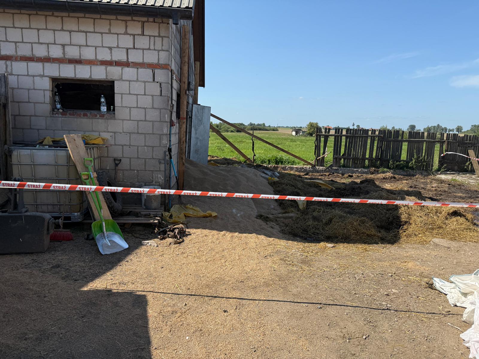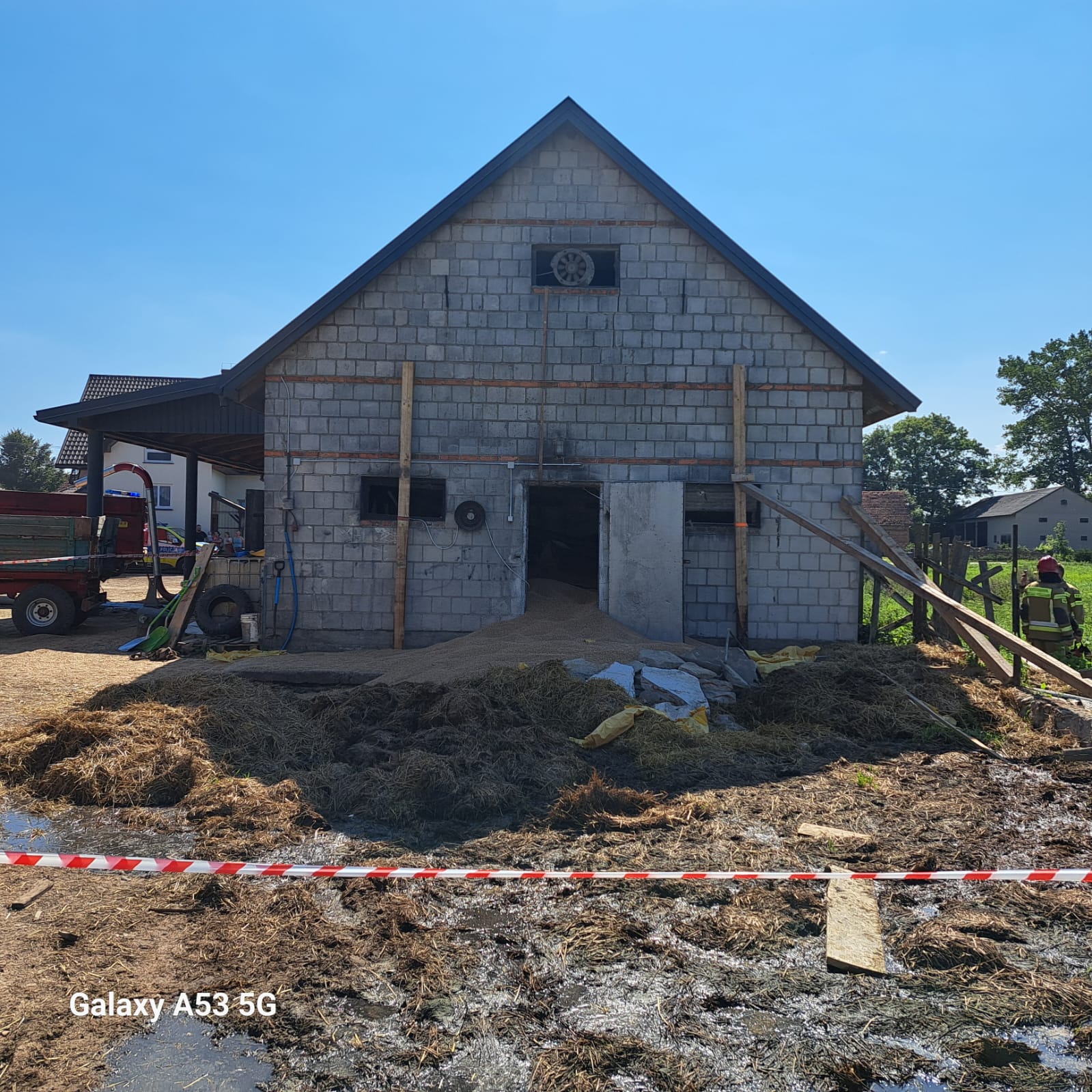 14 sierpnia 2025 roku o godzinie 12:24 do Stanowiska Kierowania Komendanta Powiatowego PSP w Olecku wpłynęło zgłoszenie o zawaleniu się części stropu budynku inwentarskiego, w którym znajdowało się bydło.