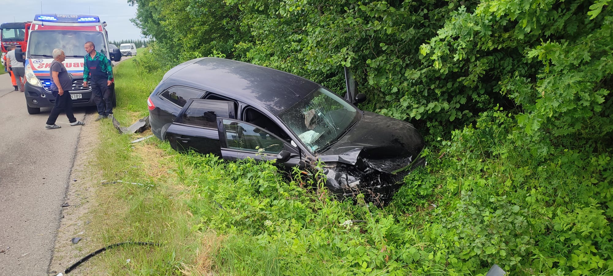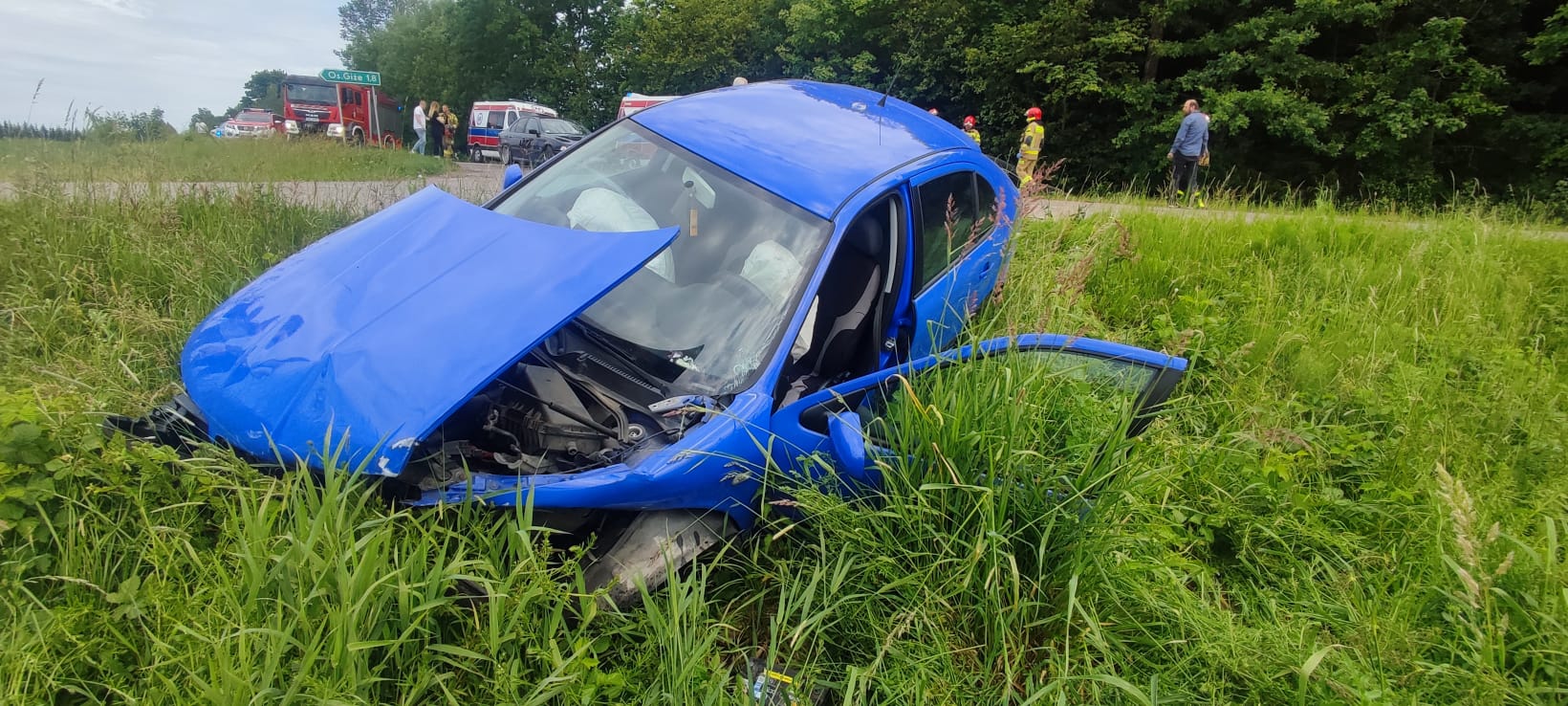 Po przybyciu na miejsce zdarzenia sił i środków z Państwowej Straży Pożarnej stwierdzono, że wszystkie osoby uczestniczące w wypadku znajdowały się już na zewnątrz pojazdów – żadna z nich nie była zakleszczona ani uwięziona wewnątrz rozbitych aut. Siła zderzenia była na tyle duża, że oba pojazdy zostały uszkodzone i znajdowały się w przydrożnych rowach.