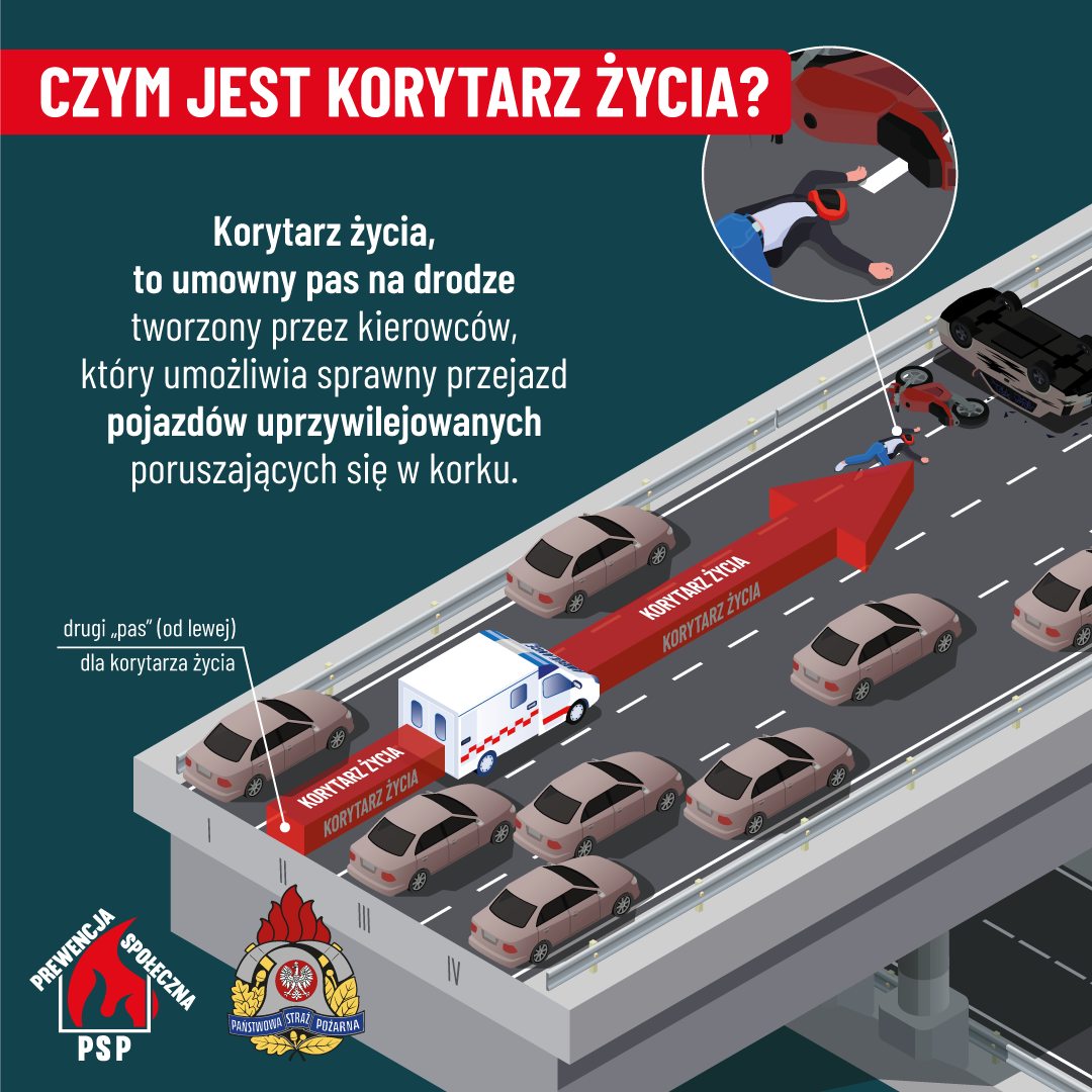 Na nagraniu na naszej stronie w social mediach (facebook, X) możecie zobaczyć, jak wygląda prawidłowo utworzony korytarz życia w realnej sytuacji. To dzięki takim zachowaniom możemy działać szybko i skutecznie!tekst. kpt. P.Adamski