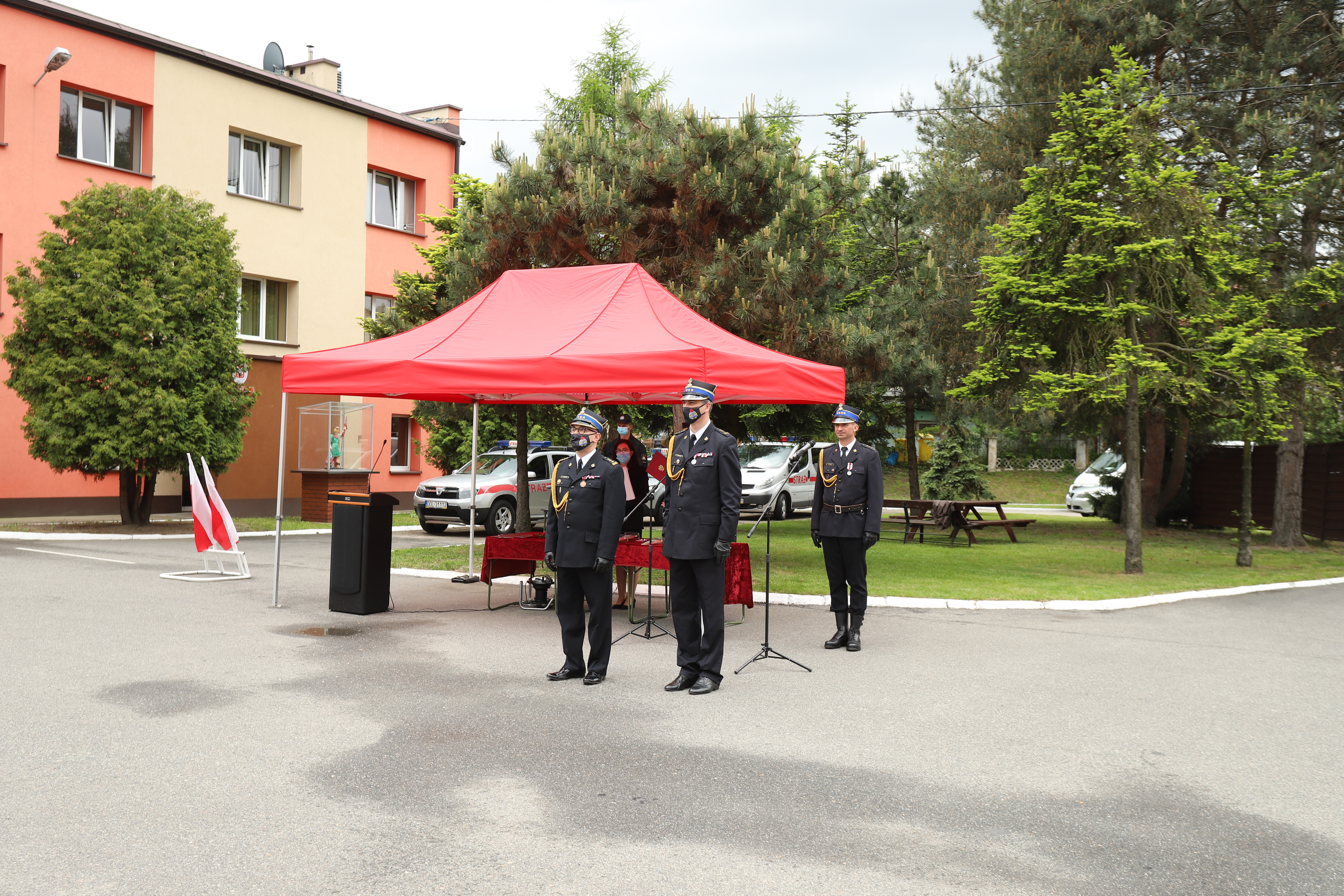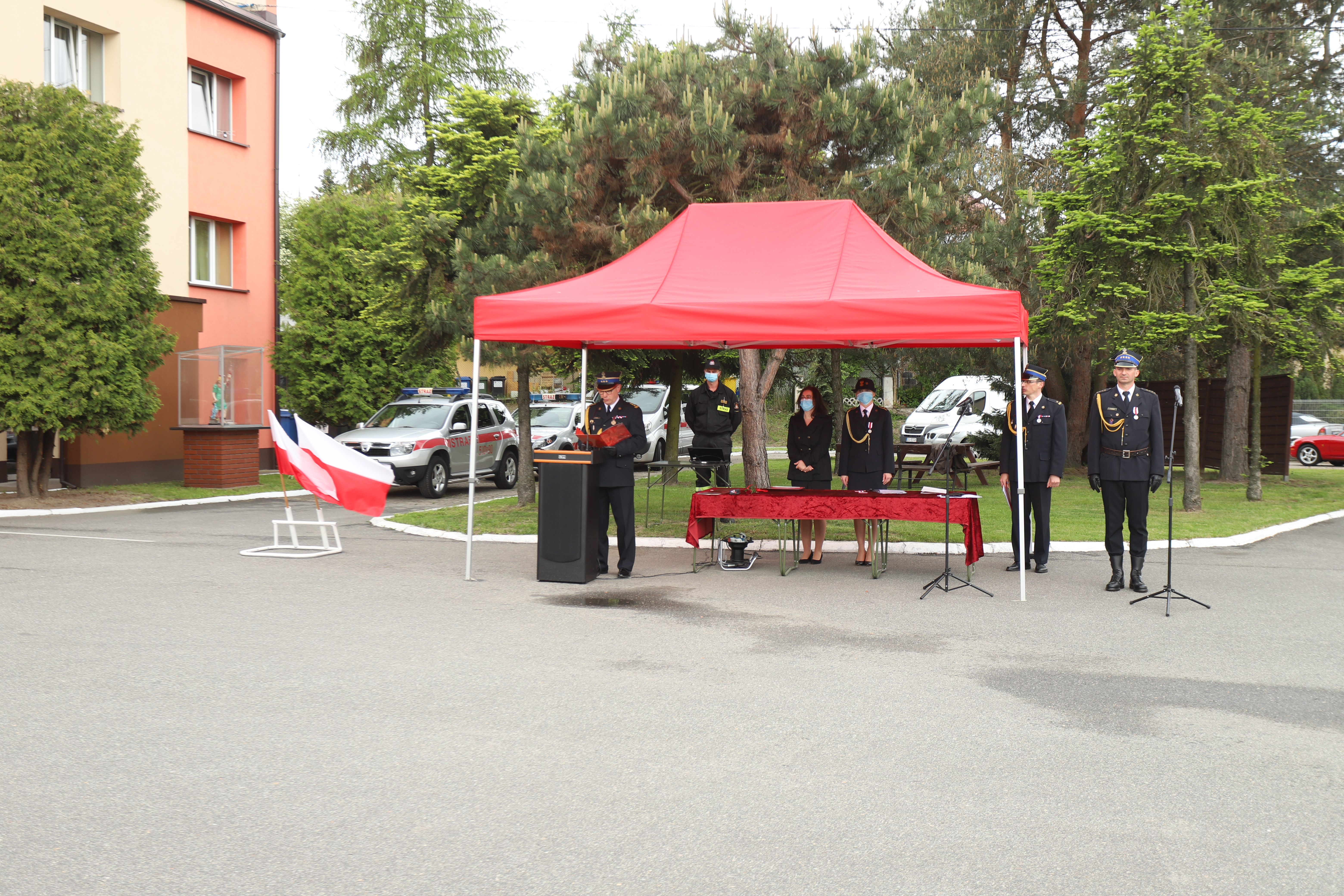 Na zakończenie części dotyczącej odznaczeń i wyróżnień Komendant Powiatowy PSP podziękował za wsparcie finansowe zakupu średniego samochodu ratowniczo-gaśniczego dla JRG w Sycowie w 2020r. oraz pozostałego sprzętu pozyskanego w ubiegłym roku, jak również za długoletnią współpracę, a także wspieranie finansowe funkcjonowania Państwowej Straży Pożarnej.