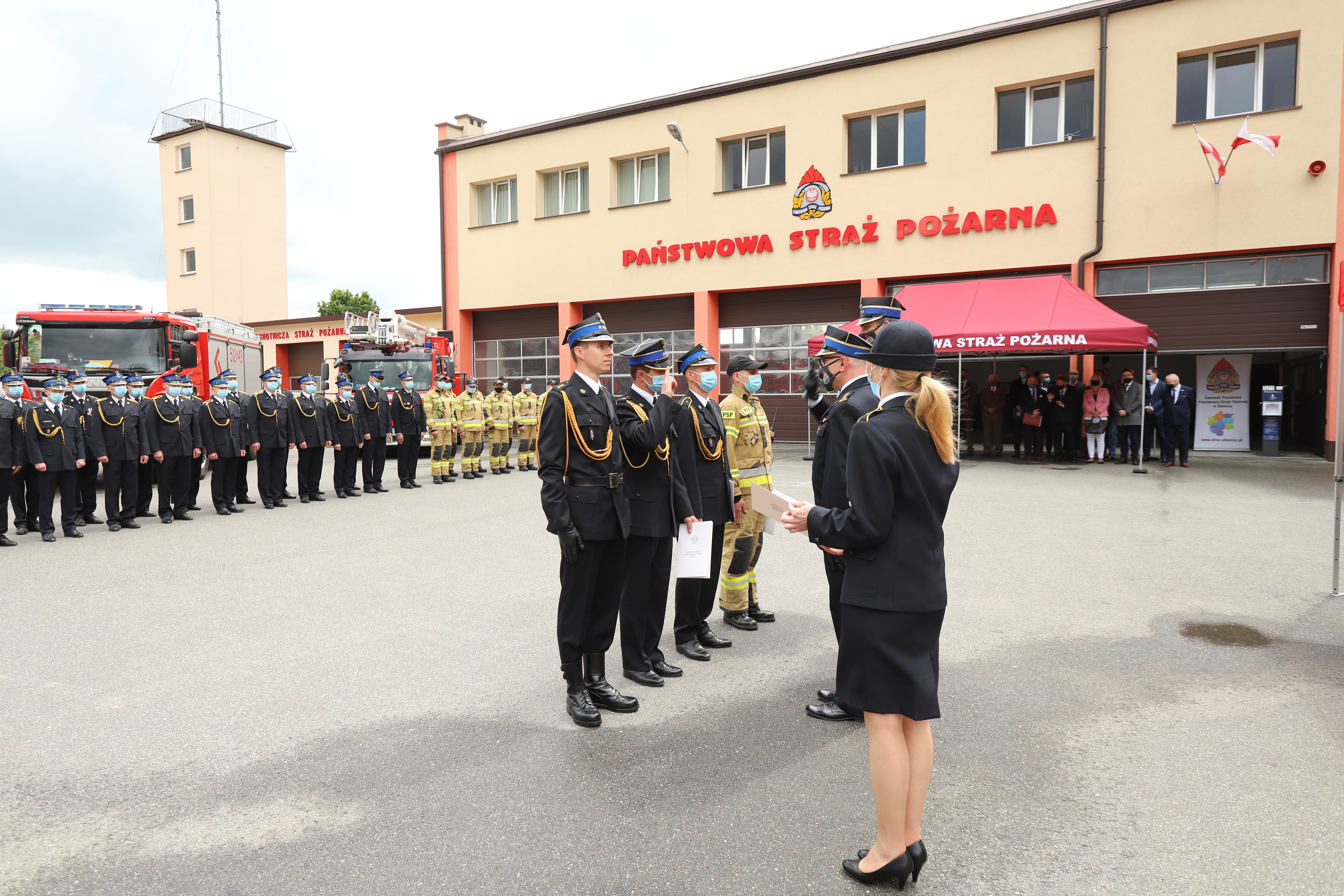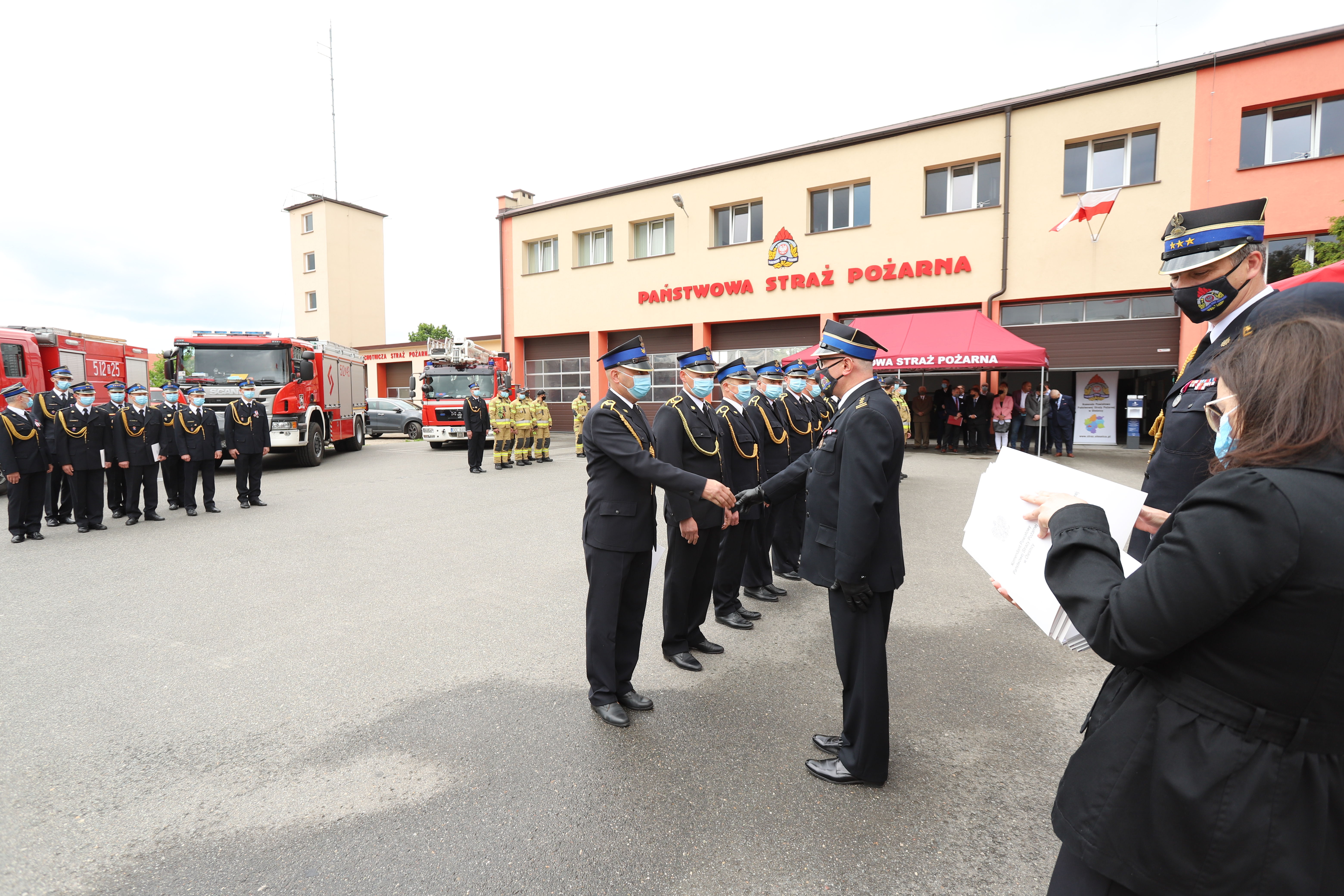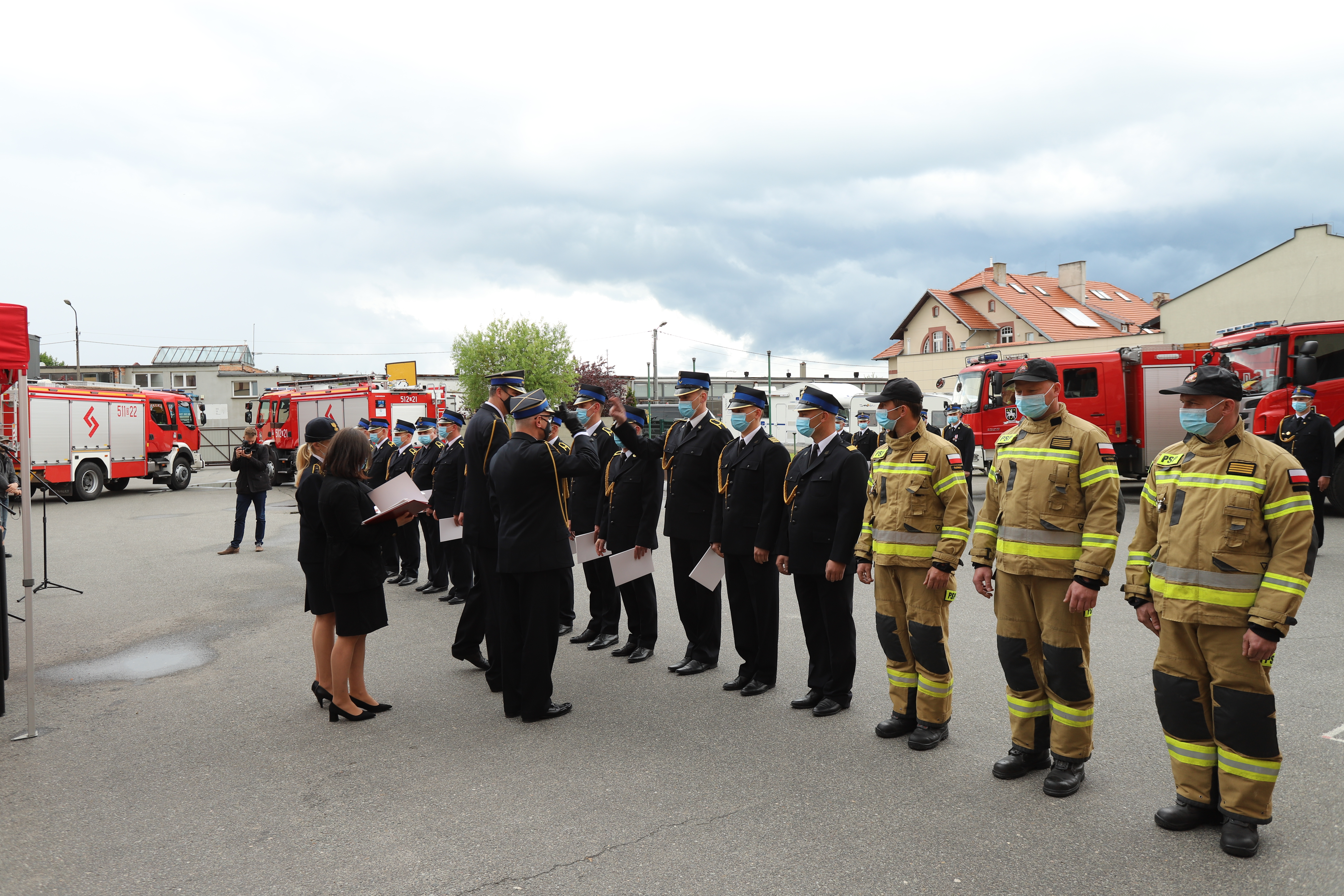 28 maja 2021 roku był dla Nas dniem niezwykle uroczystym. Po roku przerwy związanej z pandemią mogliśmy zorganizować Powiatowe Obchody Dnia Strażaka, zgodnie z należnym ceremoniałem z udziałem wszystkich odznaczonych i awansowanych, a także zaproszonych gości. Oczywiście obowiązywały zasady reżimu sanitarnego, przygotowano płyny do dezynfekcji, maseczki oraz odpowiednio dużą przestrzeń w czasie poczęstunku.