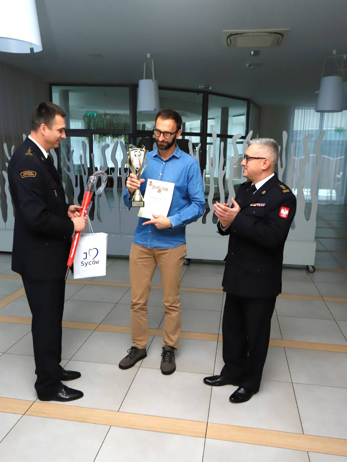 Pamiątkowe puchary oraz dyplomy wręczył Zastępca Komendanta Wojewódzkiego PSP we Wrocławiu st. bryg. Piotr Grzyb w asyście Komendanta Powiatowego PSP w Oleśnicy st. bryg. Andrzeja Fischer.