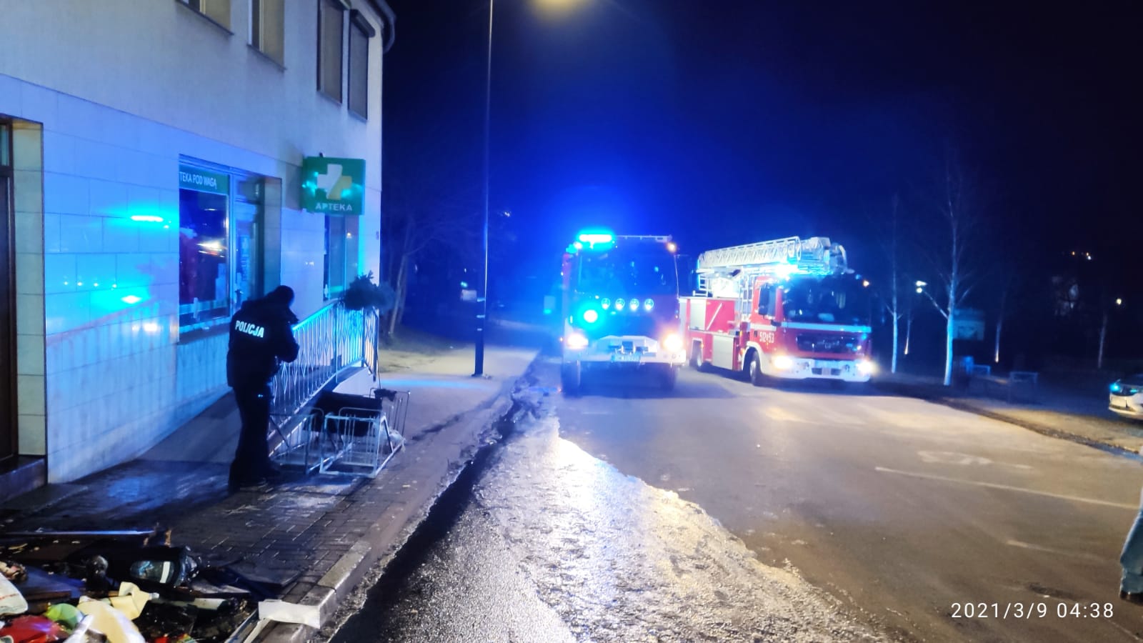 O zdarzeniu poinformowano Powiatowy Nadzór Budowlany oraz Energetykę. Na miejscu obecny był patrol Policji oraz Pogotowie Gazowe.