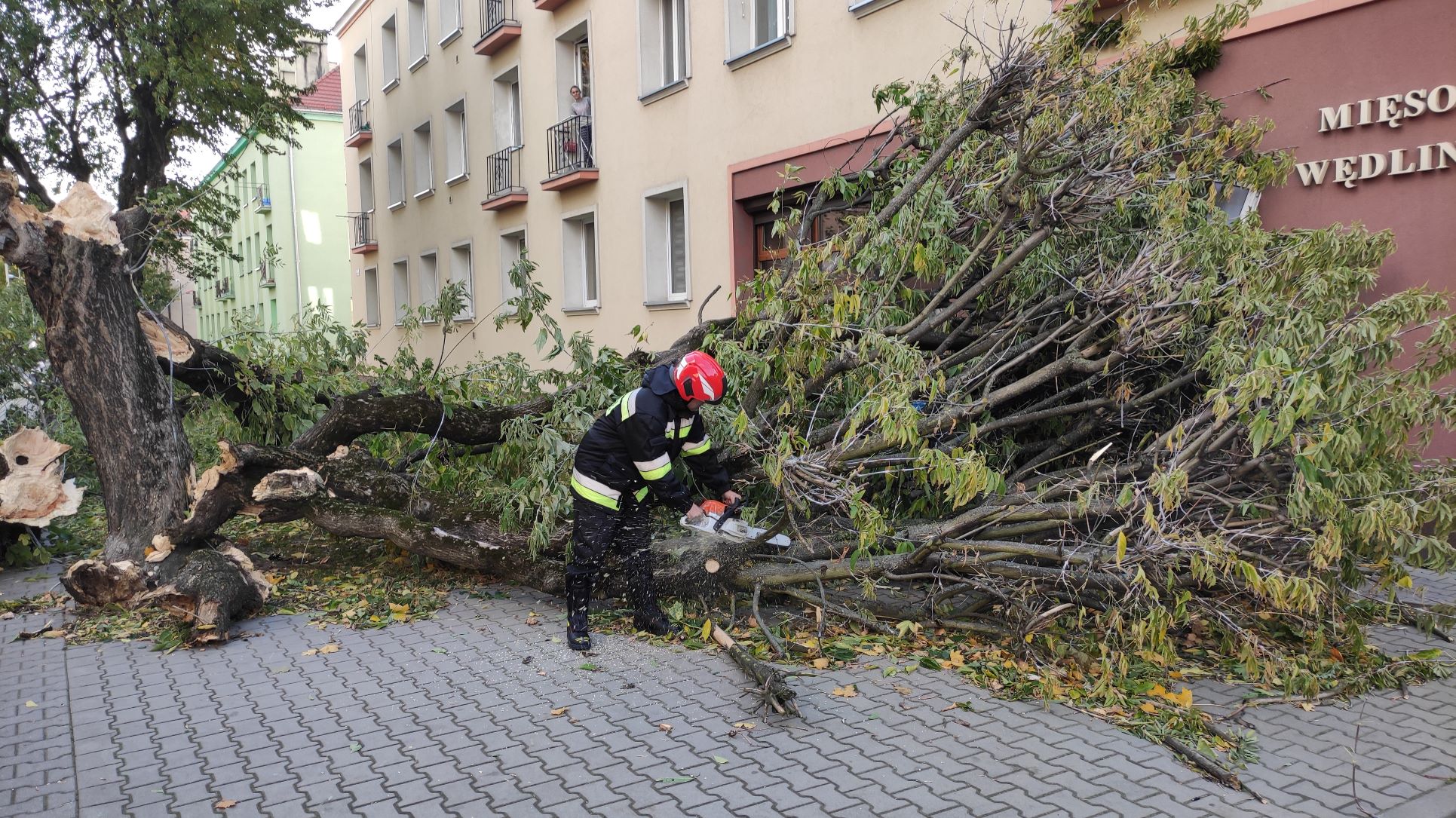 Zgłoszenia o połamanych konarach i drzewach, a także uszkodzonych elementach dachów i linii energetycznych spływały do dyżurnego SK KP PSP w Oleśnicy ze wszystkich gmin powiatu oleśnickiego.