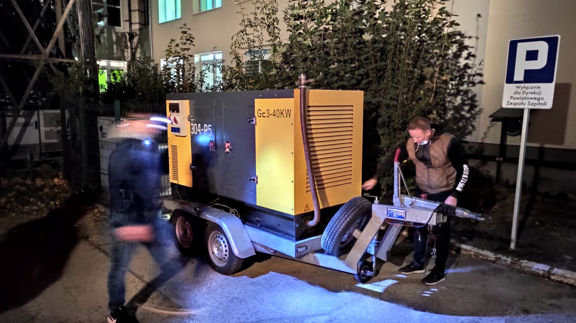 Newralgicznym zdarzeniem, z uwagi na zagrożenie życia wielu osób, było niezwłoczne podtrzymanie energii elektrycznej w budynku oleśnickiego szpitala przy ul. Armii Krajowej 1 (nastąpiła awaria agregatu stanowiącego zasilanie awaryjne budynku) – zgłoszenie przekazano o godz. 17.16 do dyżurnego . Niezwłocznie przedysponowano do tego zdarzenia (wszystkie zastępy PSP z Oleśnicy i Sycowa były w tym czasie przy zdarzeniach związanych z usuwaniem skutków silnych wiatrów) zastępy SLRr z agregatem prądotwórczym, GBA i SD-40 (z agregatem prądotwórczym) z JRG Oleśnica oraz SOp z kierownictwem Komendy. Jednocześnie zadysponowany został zastęp SRt z JRG Syców z agregatem prądotwórczym przewoźnym (obsada osobowa wzmocniona dodatkowym strażakiem) o mocy 20kVA. Poprzez Stanowisko Kierowania KW PSP we Wrocławiu zadysponowany został również agregat prądotwórczy na przyczepie o mocy 40kW z KM PSP we Wrocławiu. Wsparcia szpitalowi w postaci dodatkowych agregatów prądotwórczych udzieliły również MGK w Oleśnicy oraz firma Transpiasko i Trakbud, którym dziękujemy za udzielone wsparcie. Dzięki podjętym działaniom zapewniono zasilanie energetyczne w urządzeniach funkcjonujących w OIOM i na oddziale neonatologii, podtrzymujących funkcje życiowe osób tego wymagających. Po godzinie 19 przywrócona została dostawa energii elektrycznej do budynku. Na miejscu, do czasu naprawy uszkodzonego agregatu, pozostał dostarczony przez wrocławskich strażaków agregat na wypadek kolejnego zaniku prądu w oleśnickim szpitalu.