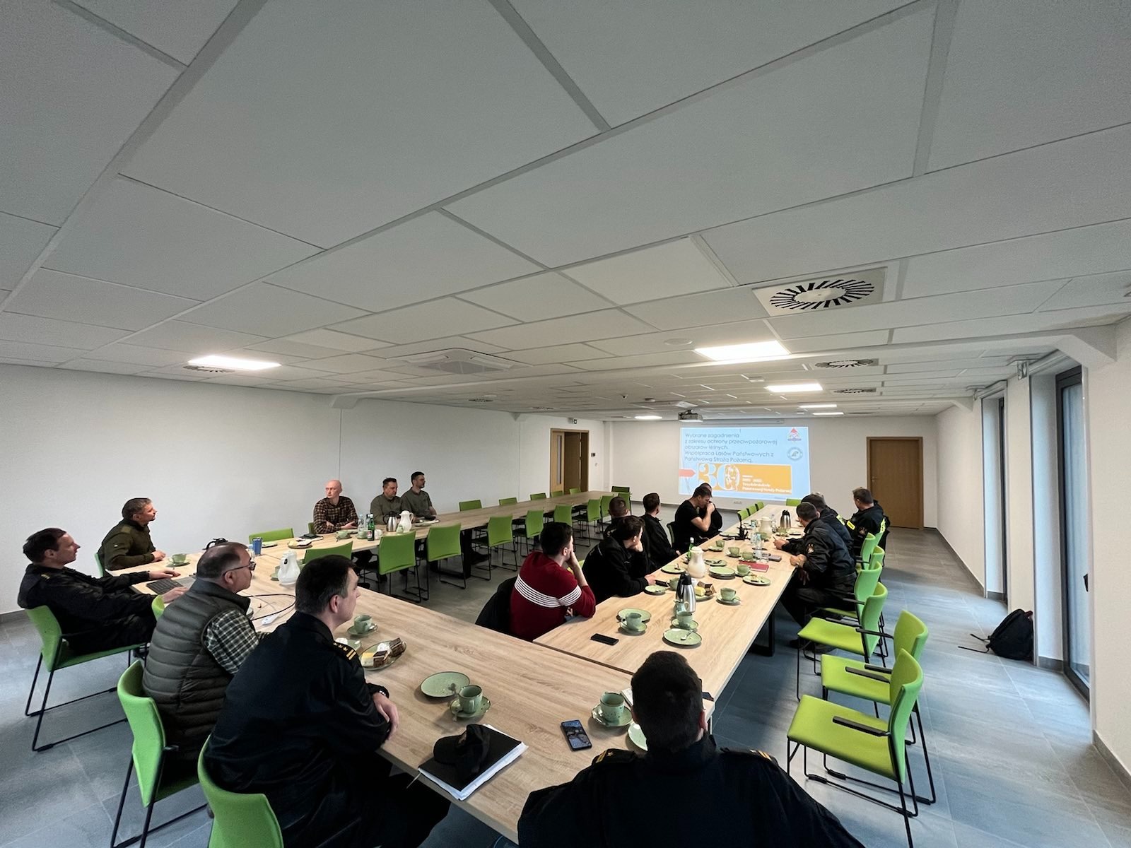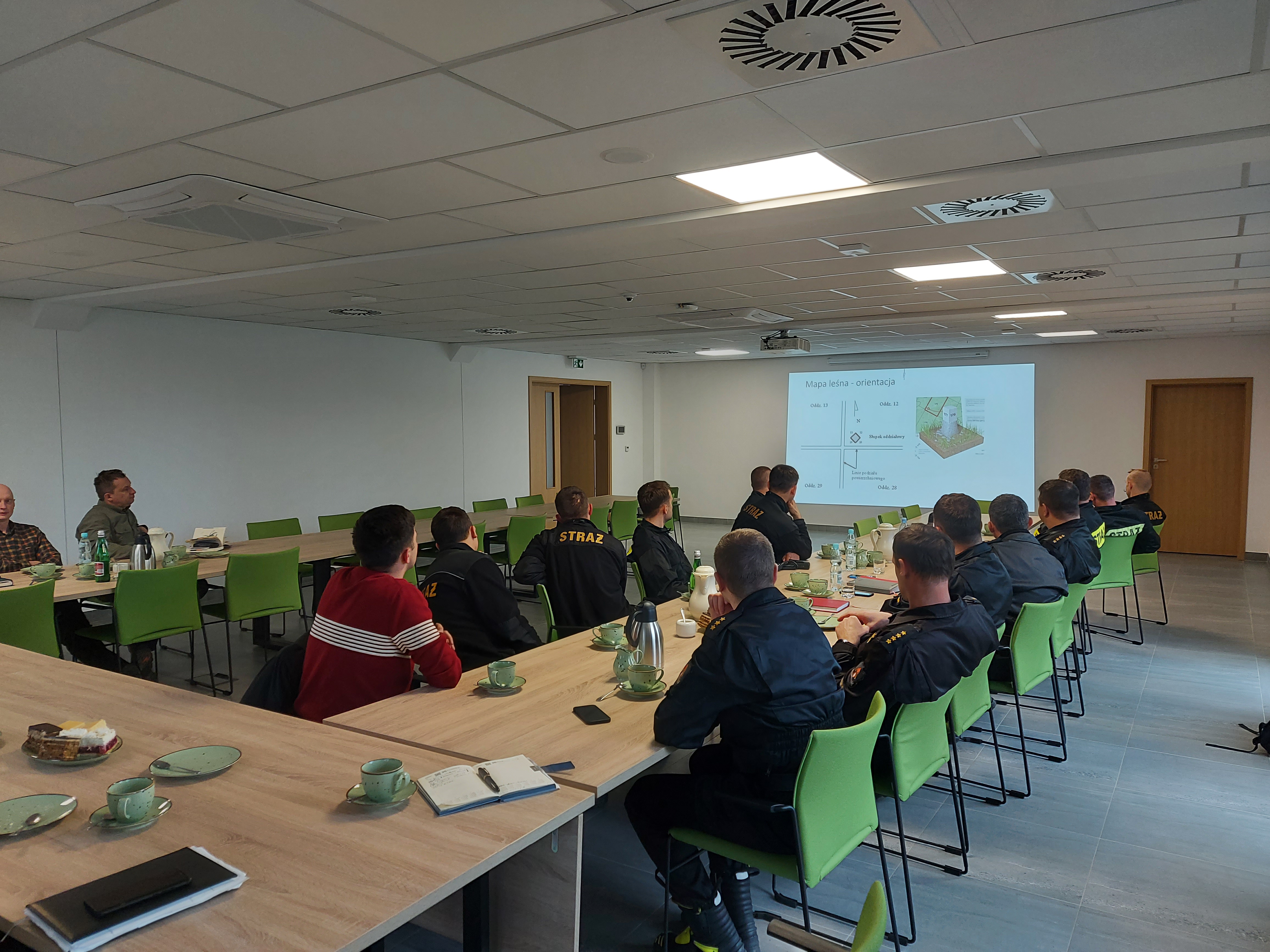 W czasie szkolenia przedstawiciel Lasów Państwowych zapoznał uczestników ze specyfiką Nadleśnictwa, zasadami czytania map leśnych oraz korzystania z aplikacji mobilnej BDL (bank danych o lasach). Przedstawiciele PSP przedstawili przepisy dotyczące bezpieczeństwa pożarowego w lasach, w szczególności wymagania oraz sposoby oznaczania dojazdów pożarowych, punktów czerpania wody, a także wykonywania pasów przeciwpożarowych. Kolejnym etapem było zapoznanie uczestników z przygotowaniem operacyjnym Komendy do prowadzenia działań na obszarach leśnych, a także przedstawienie danych statystycznych dotyczących pożarów lasów.