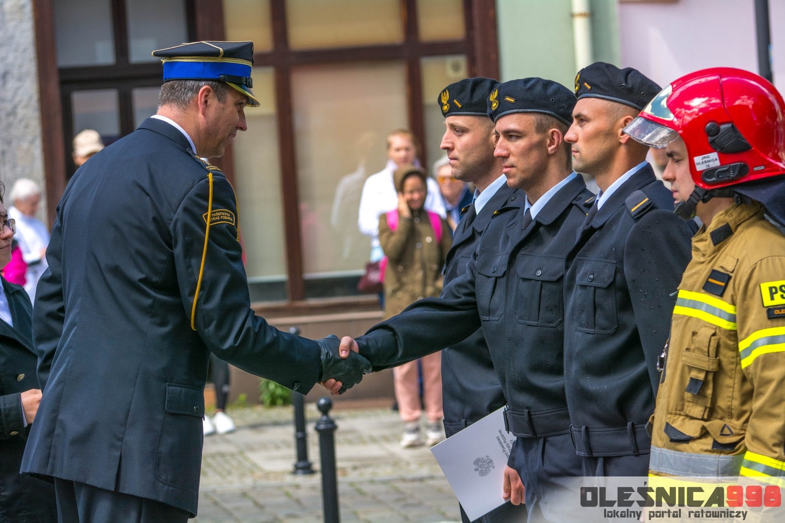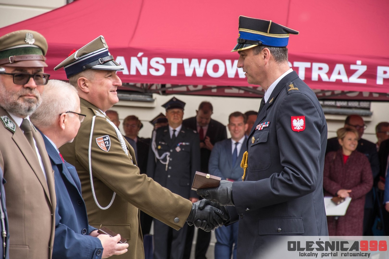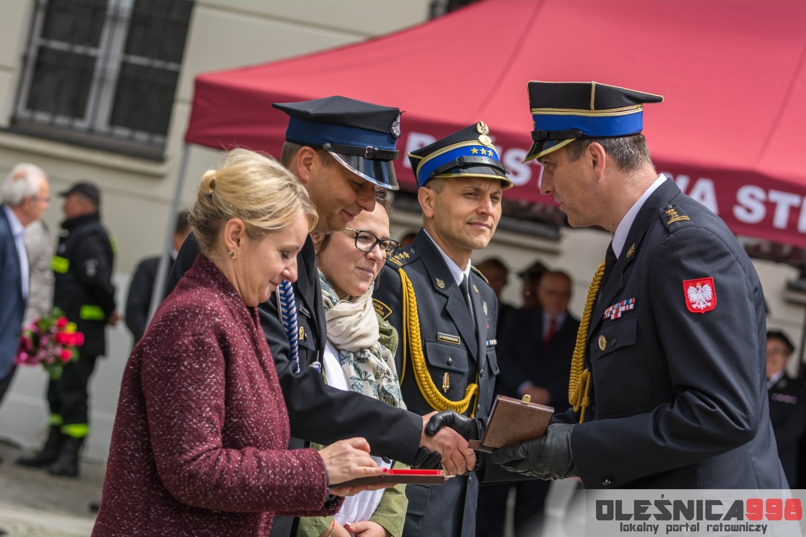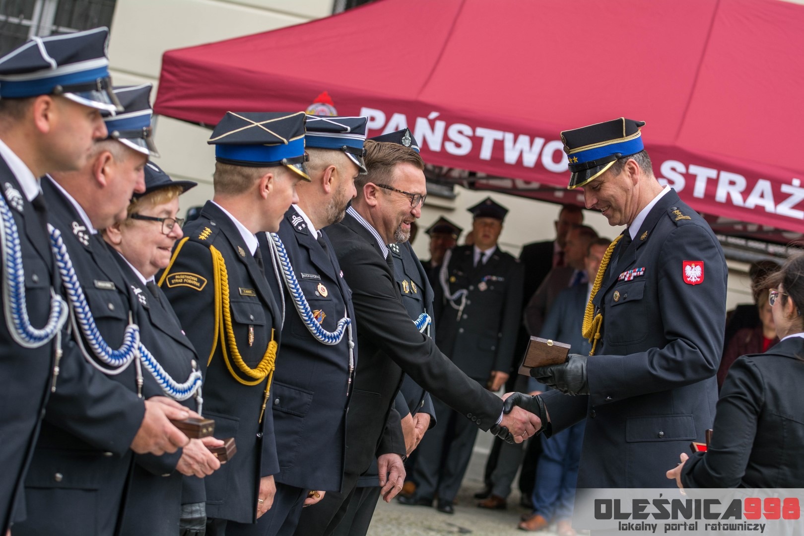 Za długoletnią współpracę, a także pomoc w realizacji zadań Państwowej Straży Pożarnej oraz Ochotniczych Straży Pożarnych, Komendant Powiatowy PSP w Oleśnicy podziękował zaproszonym gościom wręczając Im pamiątkowy medal okolicznościowy z okazji 30-lecia Komendy Powiatowej Państwowej Straży Pożarnej w Oleśnicy.