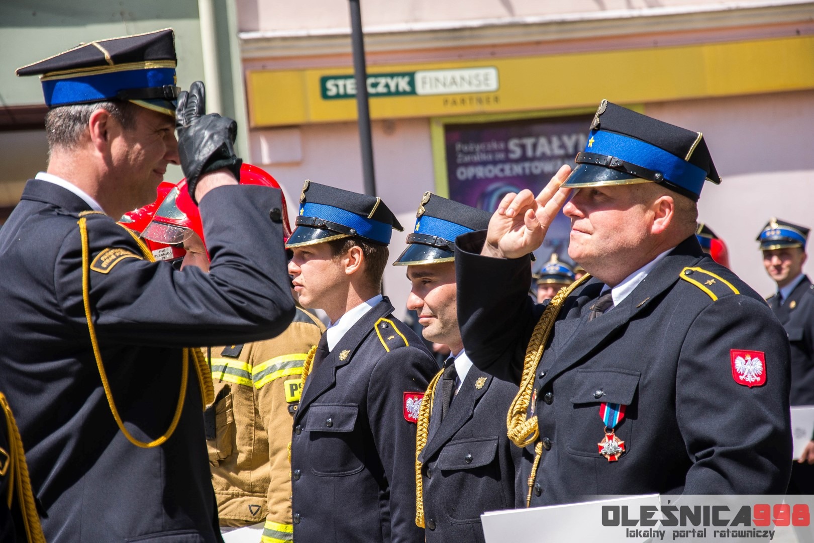 W dniu 28.05.2022r. na Rynku w Oleśnicy odbyły się uroczyste, jubileuszowe Powiatowe Obchody Dnia Strażaka. Sygnałem do rozpoczęcia uroczystości był hejnał z oleśnickiego Ratusza.