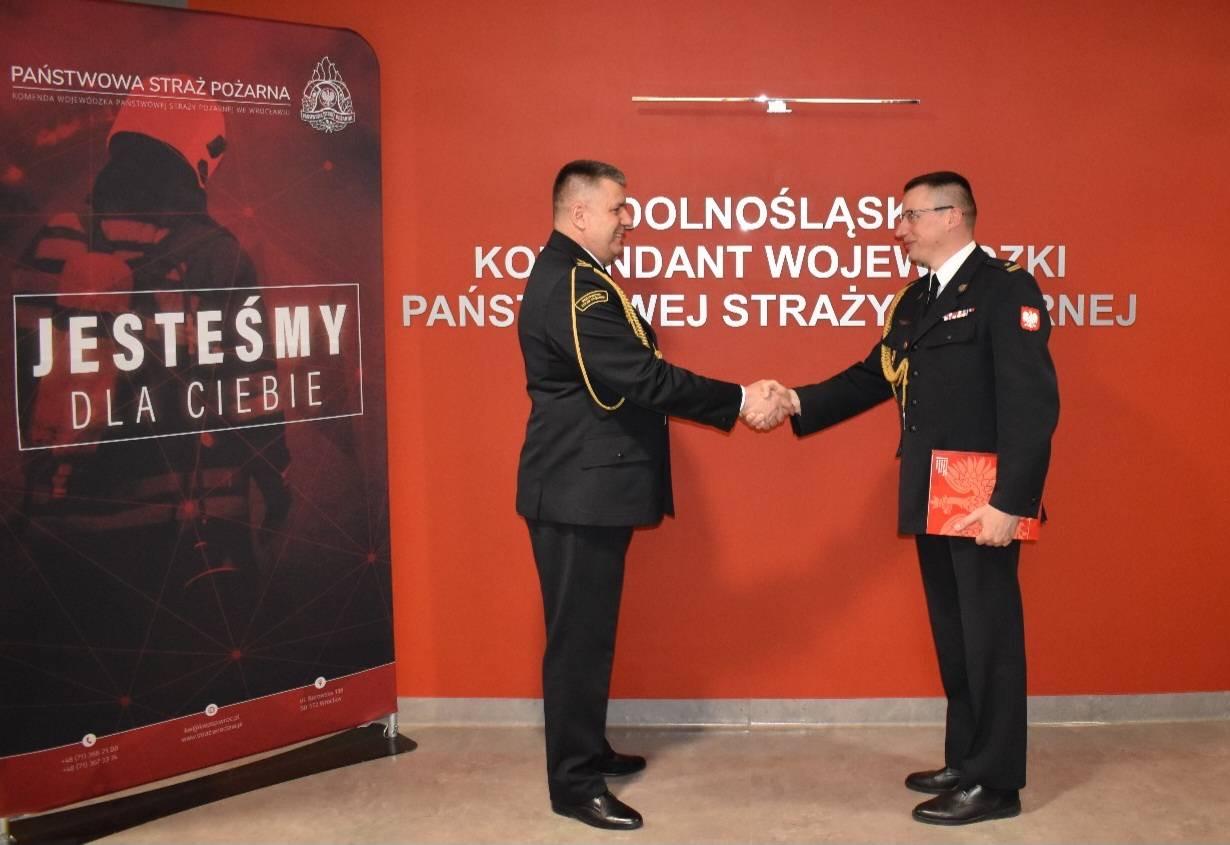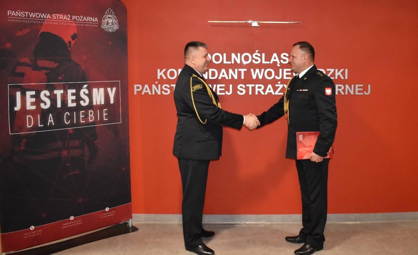 Dolnośląski Komendant Wojewódzki PSP we Wrocławiu st. bryg. Marek Hajduk, wręczył decyzje personalne o powołaniu z dniem 8 maja 2024r. na stanowisko Komendanta Powiatowego mł. bryg. Łukaszowi Słomie w KP PSP Oleśnica, a także na stanowisko Zastępcy Komendanta Powiatowego st. kpt. Rafałowi Zadce w KP PSP Oleśnica.