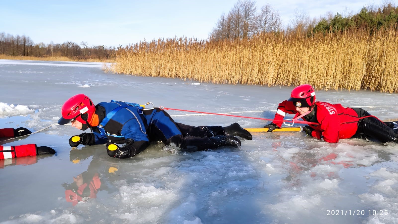 W dniach 19-20.01. oraz 22-23.01.2021r. strażacy JRG Oleśnica i JRG Syców przeprowadzili praktyczne ćwiczenia z ratownictwa lodowego na akwenach w Oleśnicy i Stradomii Wierzchniej. Głównym celem ćwiczeń było utrwalenie i doskonalenie technik ratowniczych związanych z ewakuacją i udzielaniem pomocy poszkodowanym, pod którymi zarwała się pokrywa lodowa. Warunki, w których przeprowadzane były ćwiczenia, ze względu na niestabilną pokrywę lodową były bardzo zbliżone do okoliczności, w których może dojść do zagrożenia zdrowia i życia osoby, pod którą zarwie się warstwa lodu. Przeprowadzone w takich warunkach ćwiczenia z pewnością będą miały wpływ na skuteczność prowadzonych działań w przypadku wystąpienia realnego zagrożenia.