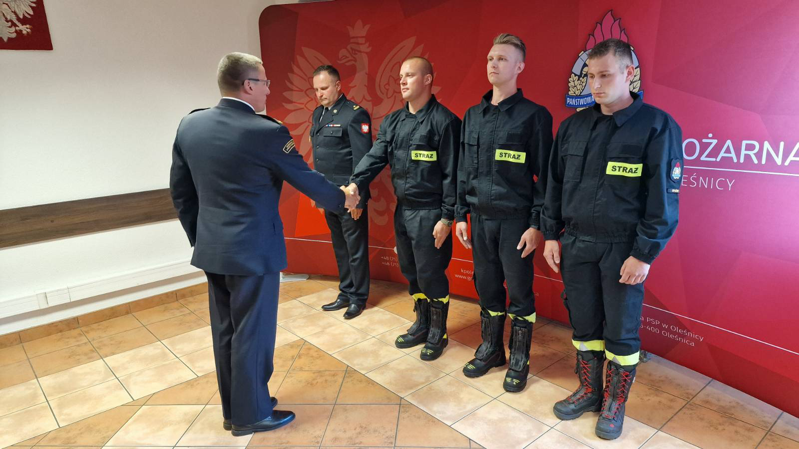 Funkcjonariusze w możliwie najbliższym czasie zostaną skierowani na szkolenie podstawowe w zawodzie strażak. Po zakończeniu kursu będą pełnili służbę w systemie zmianowym w JRG Oleśnica i JRG Syców. Tradycyjnie życzymy zdrowia oraz sukcesów w trudnej i odpowiedzialnej służbie, jaką jest Straż Pożarna.