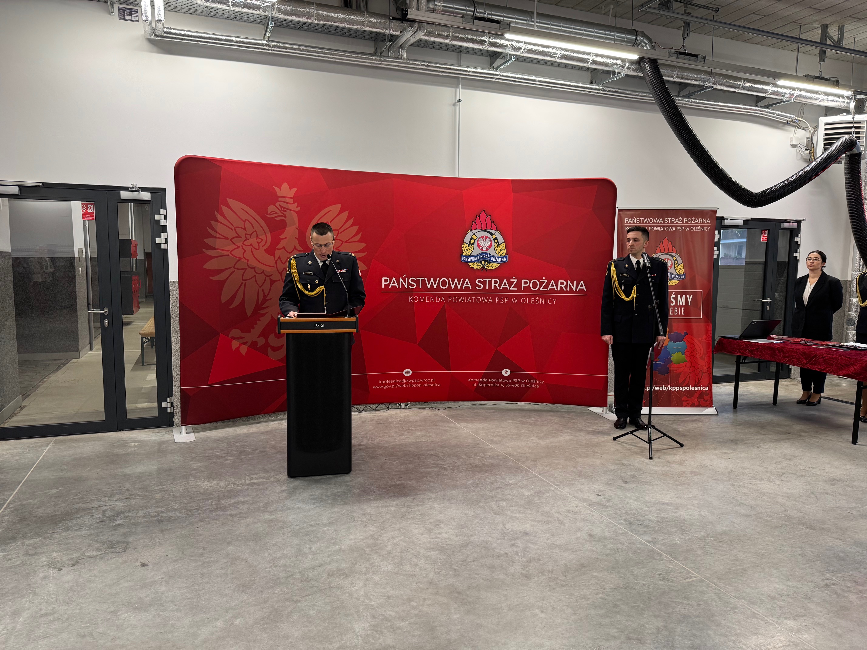 Po hymnie głos zabrał Komendant Powiatowy PSP w Oleśnicy mł. bryg. Łukasz Słoma, który powitał przybyłych gości. Komendant Powiatowy w krótkim przemówieniu podsumował kończący się rok, nawiązał do działań powodziowych naszych strażaków na terenie powiatu kłodzkiego, jeleniogórskiego i głogowskiego oraz podziękował wszystkim zaangażowanym w działalność i rozbudowę naszej komendy powiatowej. Komendant przedstawił zakończony proces rozbudowy oraz omówił plany komendy na rok 2025.