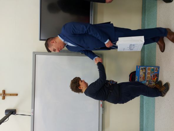 Świadkami wydarzenia byli: mama Karola - Pani Róża, Burmistrz Miasta i Gminy Syców – Dariusz Maniak, Pani Dyrektor Szkoły – Monika Janiszyn, Pani Pedagog oraz Nauczyciele i uczniowie z klasy Karola.