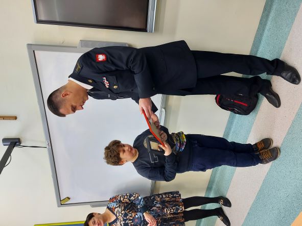Dziś w Szkole Podstawowej nr 3, przy ul. Kościelnej w Sycowie, miało miejsce niecodzienne wydarzenie. W klasie 4, Komendant Powiatowy PSP w Oleśnicy, st. bryg. Andrzej Fischer, wręczył jednemu z uczniów – Karolowi Ługowskiemu – odznakę „Iuvenis Forti”.