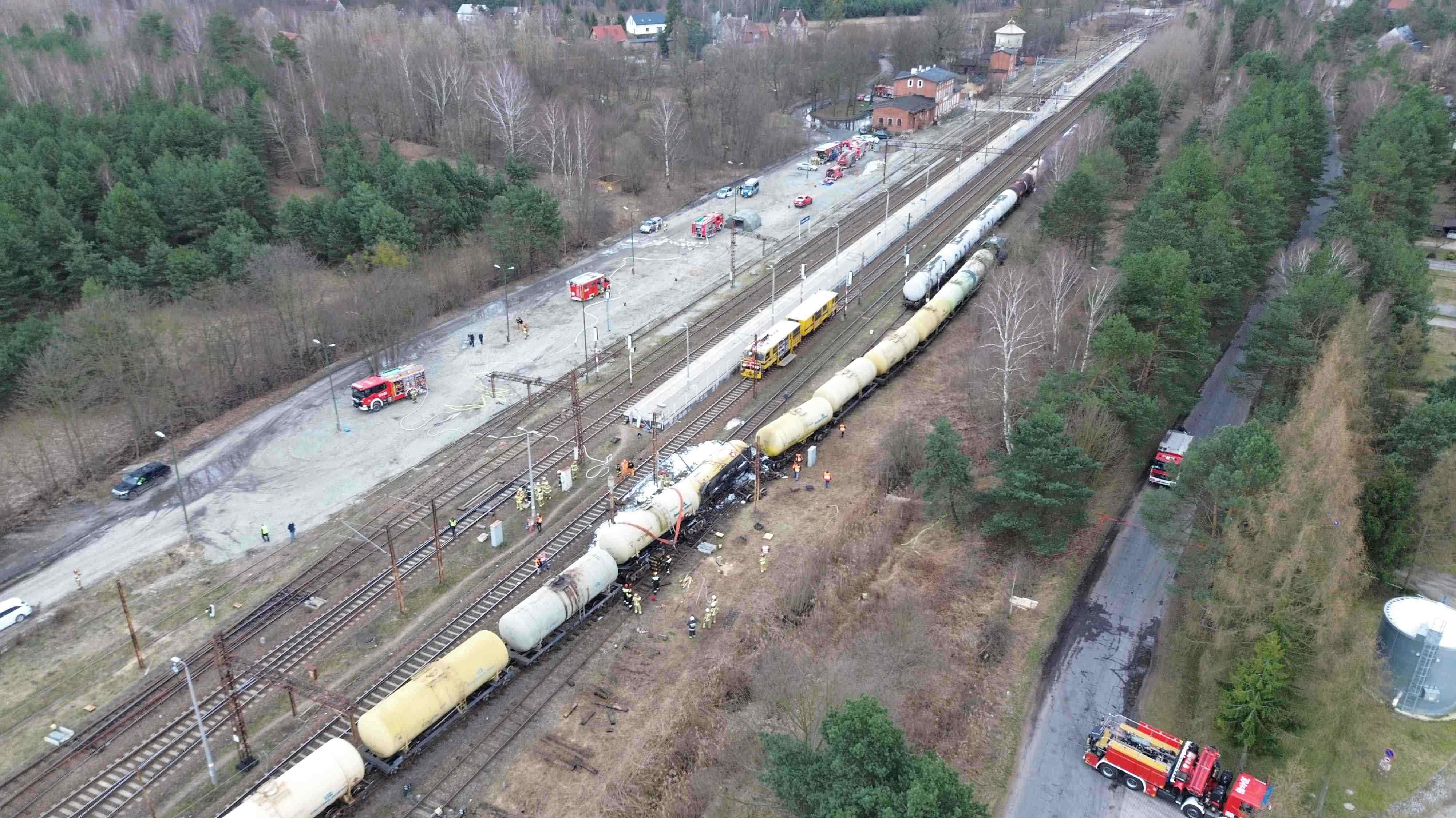 Około godziny 11:18 w dniu 26 lutego br. do dyżurnego Stanowiska Kierowania Komendy Powiatowej PSP w Oleśnicy wpłynęło zgłoszenie – o wykolejeniu się cystern kolejowych z naftą lotniczą na Stacji Kolejowej w miejscowości Grabowno Wielkie gm. Twardogóra.