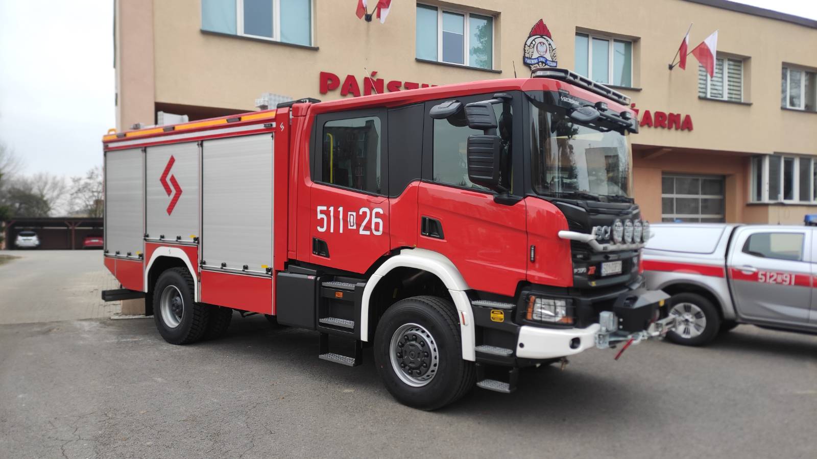 - Ciężki samochód ratowniczo-gaśniczy (GCBA) z funkcją ograniczania stref skażeń chemicznych i ekologicznych o wartości prawie 1 080 tys. zł. Napęd 4x4 (uterenowiony) na podwoziu Scania P370 XT, wyposażony m.in. w: