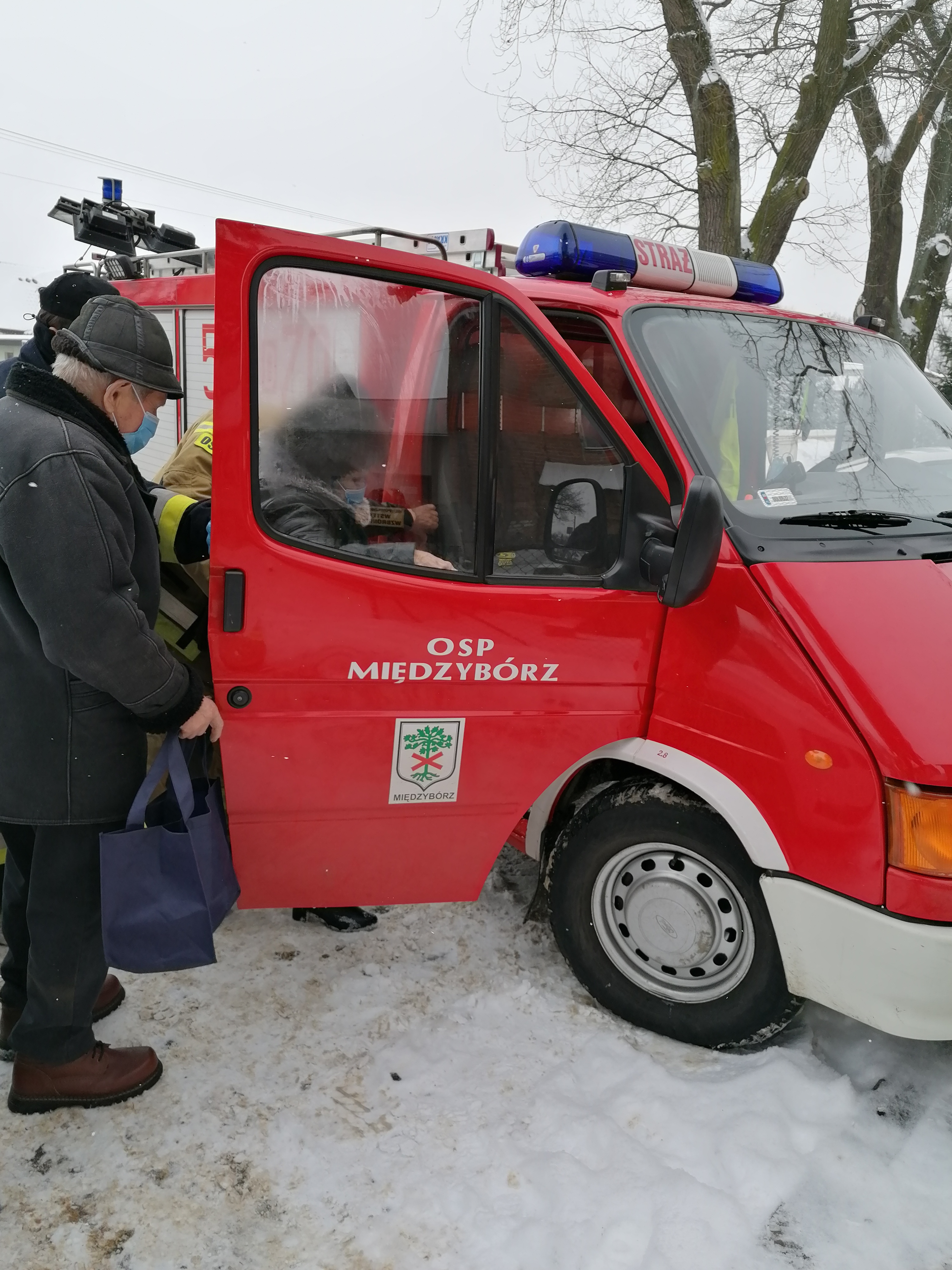 Dowożenie osób przez strażaków jako pierwsza realizowała OSP Bierutów w dniu 09.02.2021, dzień później dołączyła do nich jednostka z OSP Międzybórz. Najczęściej z tej formy pomocy korzystają mieszkańcy Gminy Bierutów oraz Międzybórz. Do dnia 10.03.2021 łącznie strażacy pomogli dostać się do punktu szczepień 9 osobom.