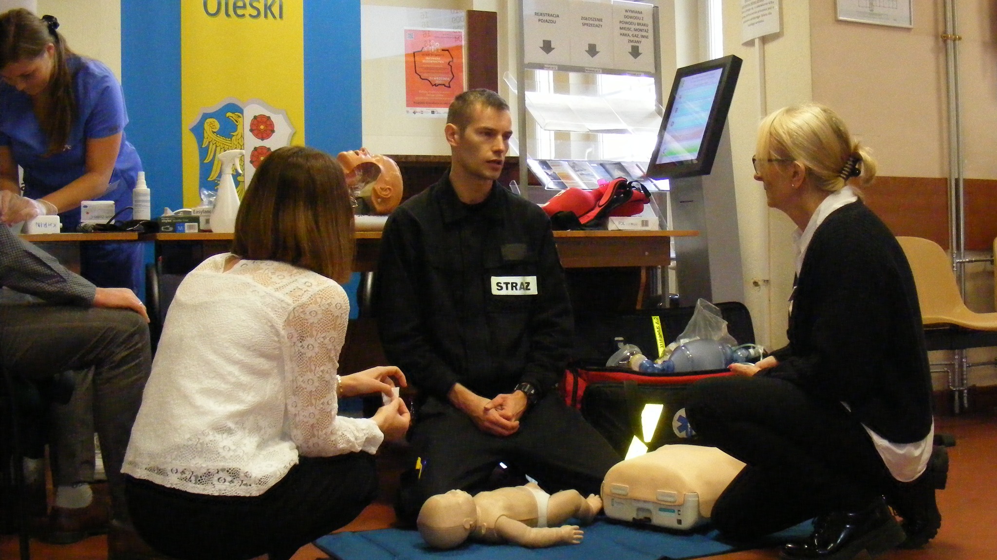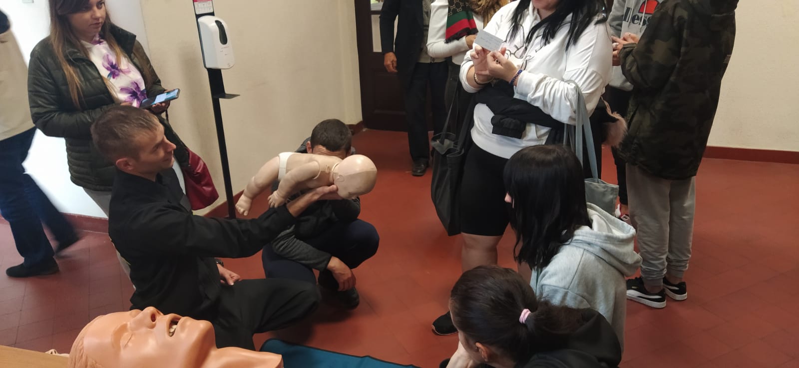 udzielania pierwszej pomocy (na fantomach osoby dorosłej i dziecka), który cieszył się dużym zainteresowaniem.