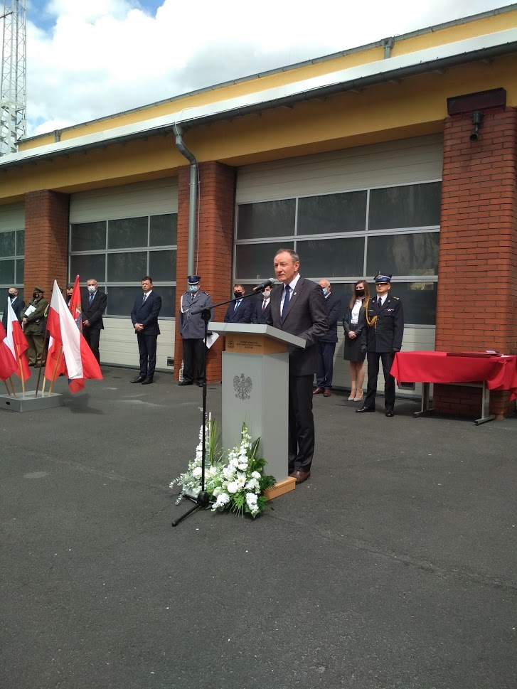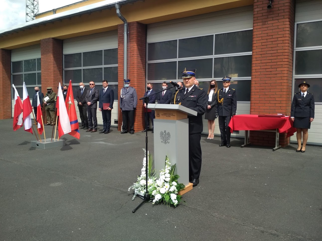 Komendant Powiatowy Państwowej Straży Pożarnej w Oleśnie st.bryg. Jarosław Zalewski powitał wszystkich strażaków, pracowników oleskiej komendy oraz zaproszonych gości.