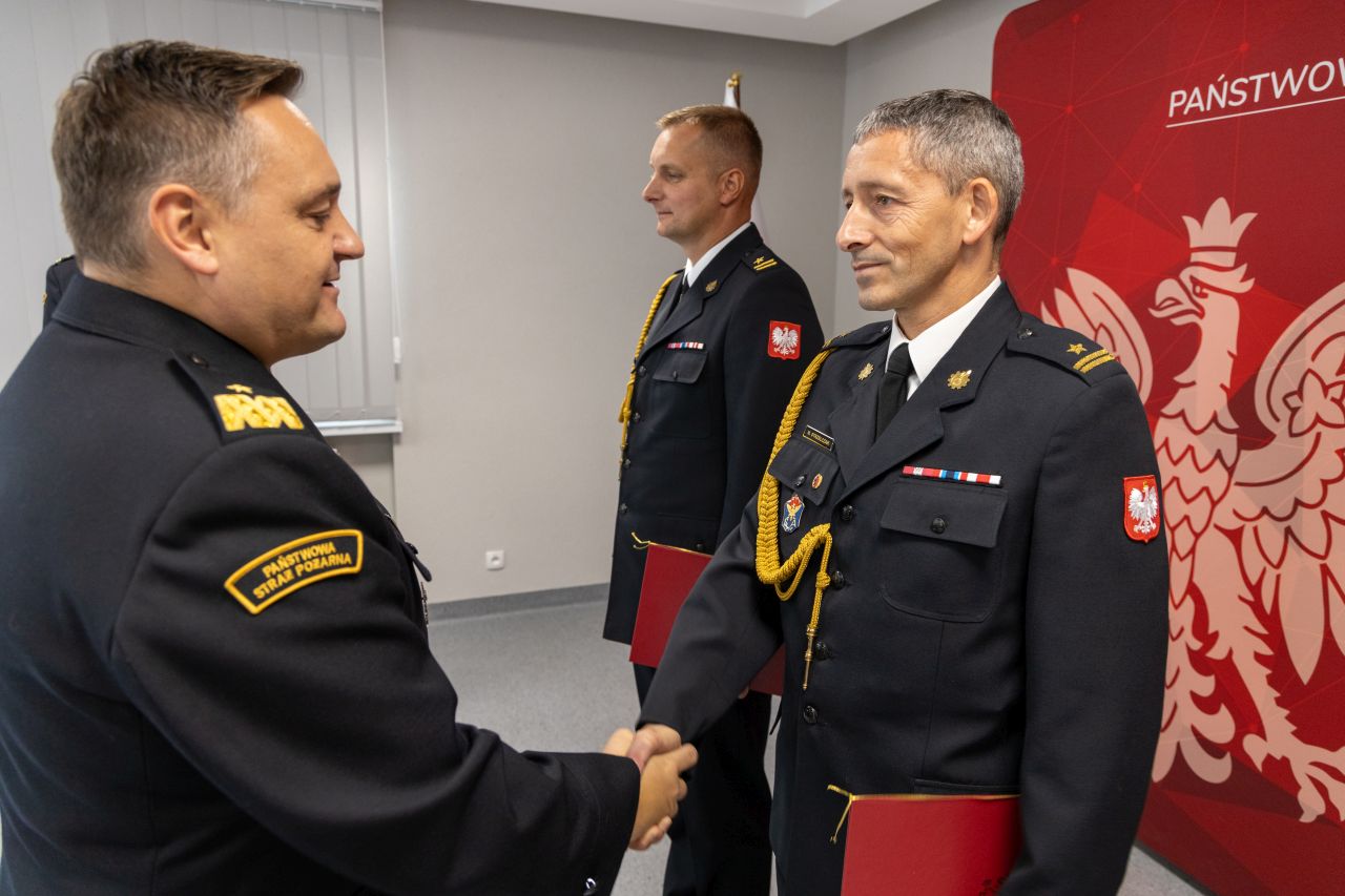 Mł. bryg. Mariusz Strzelczak otrzymał akt powołania na stanowisko Zastępcy Komendanta Powiatowego Państwowej Straży Pożarnej w Oleśnie z rąk nadbryg. Krzysztofa Kędryka Opolskiego Komendanta Wojewódzkiego PSP w obecności mł. bryg. Andrzeja Wróbla Komendanta Powiatowego PSP w Oleśnie podczas uroczystości, która odbyła się w Komendzie Wojewódzkiej PSP w Opolu.