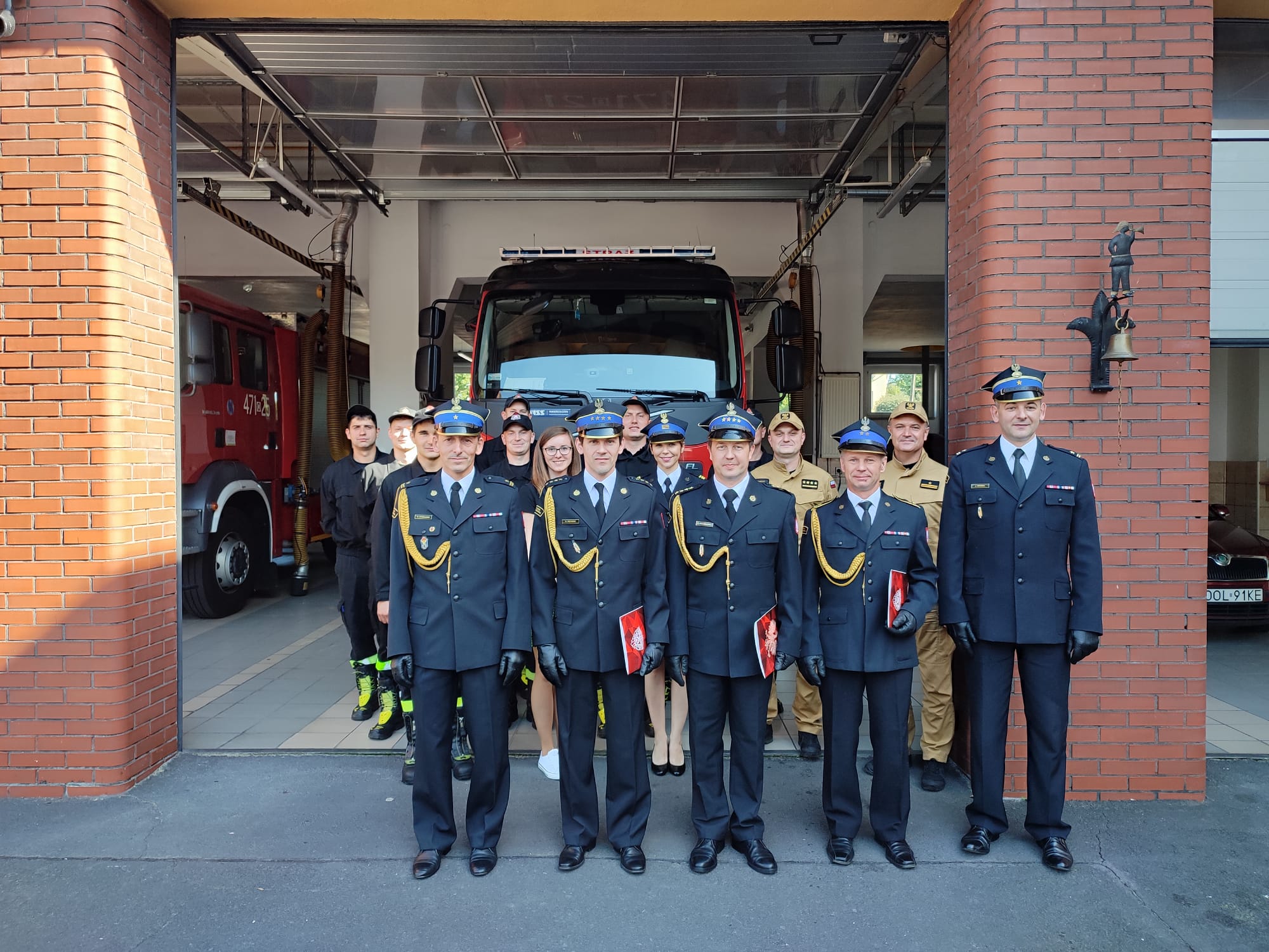 Następnie podczas uroczystej zbiórki w Komendzie Powiatowej PSP w Oleśnie z rąk mł. bryg. Andrzeja Wróbla Komendanta Powiatowego PSP w Oleśnie akt mianowania otrzymali: