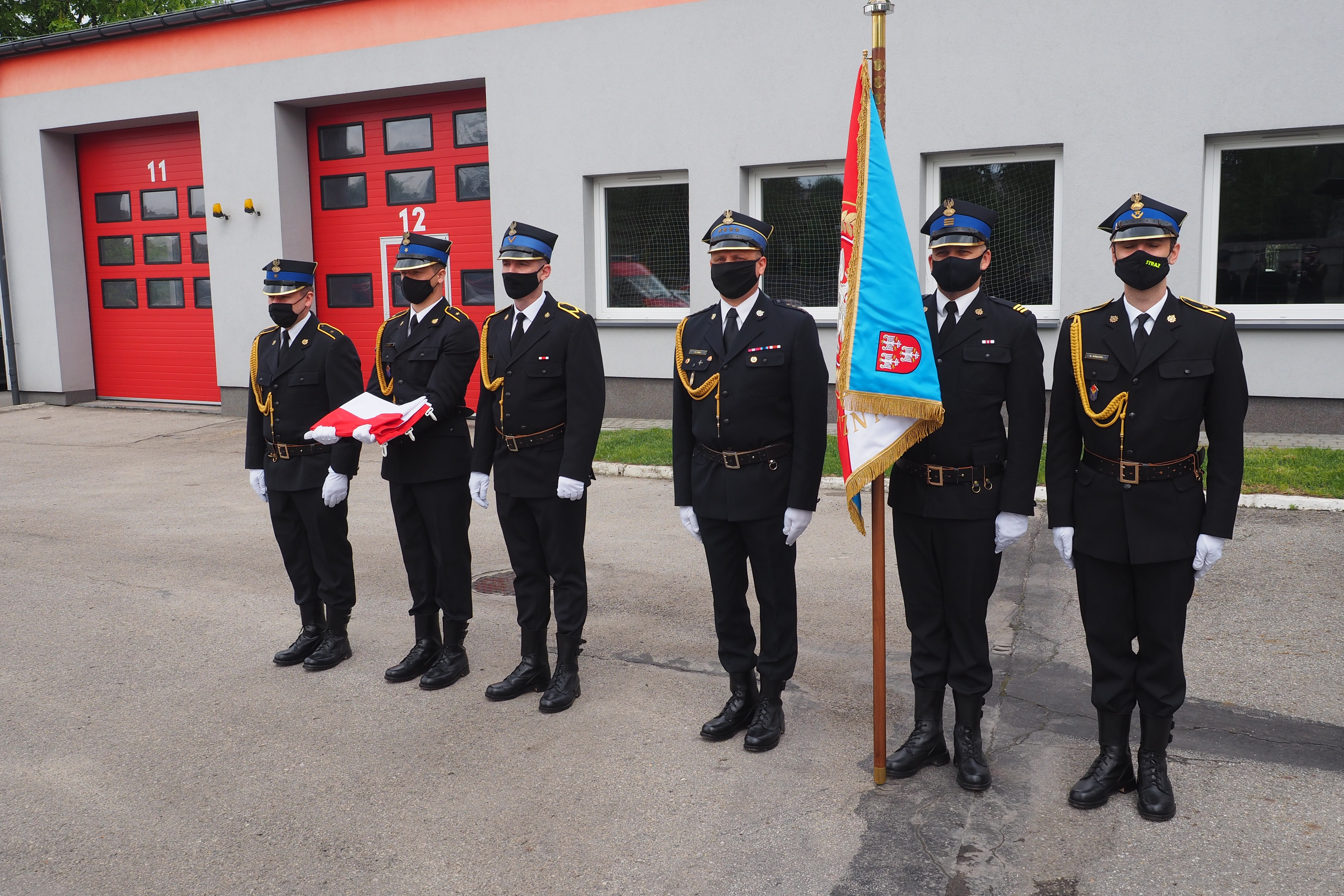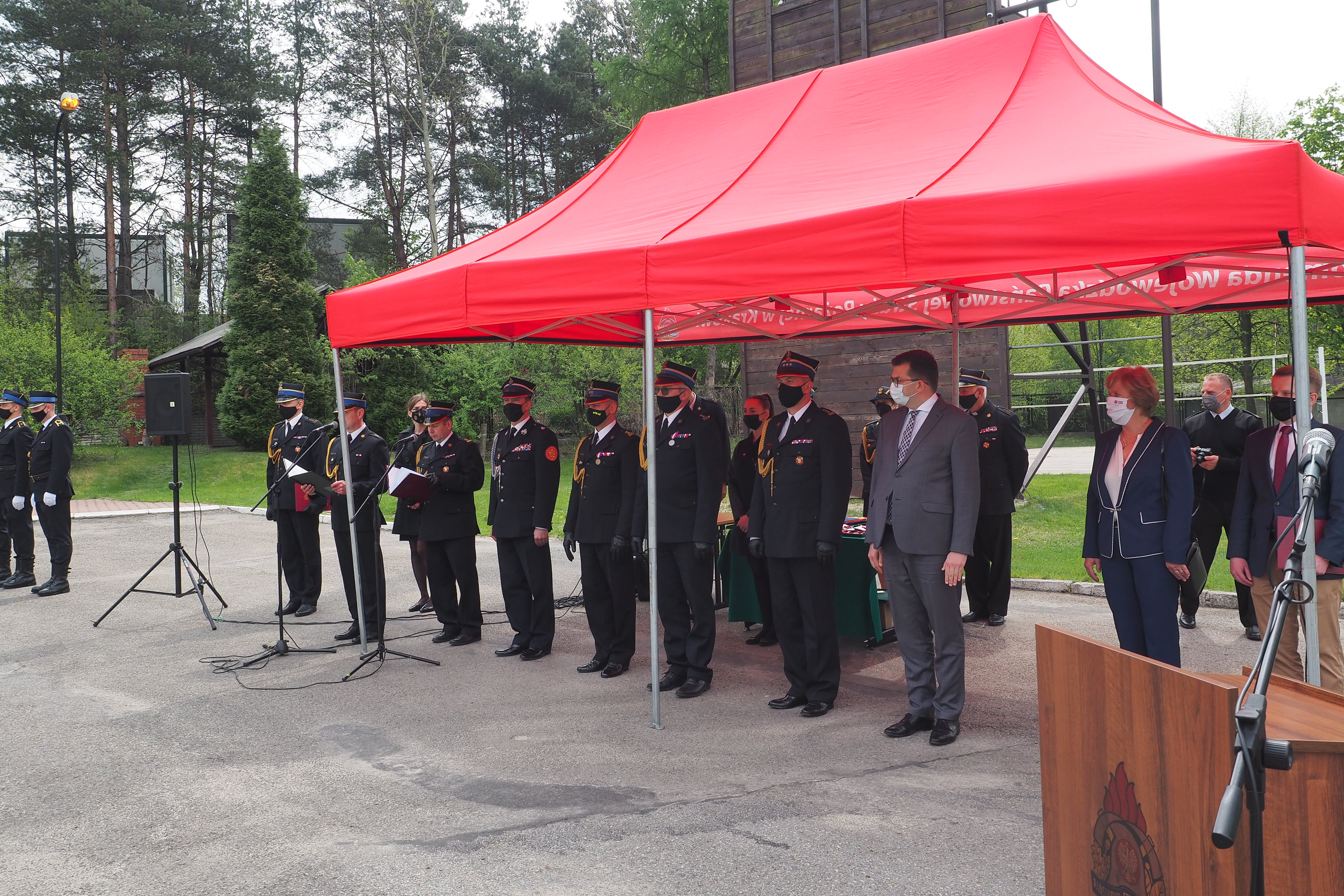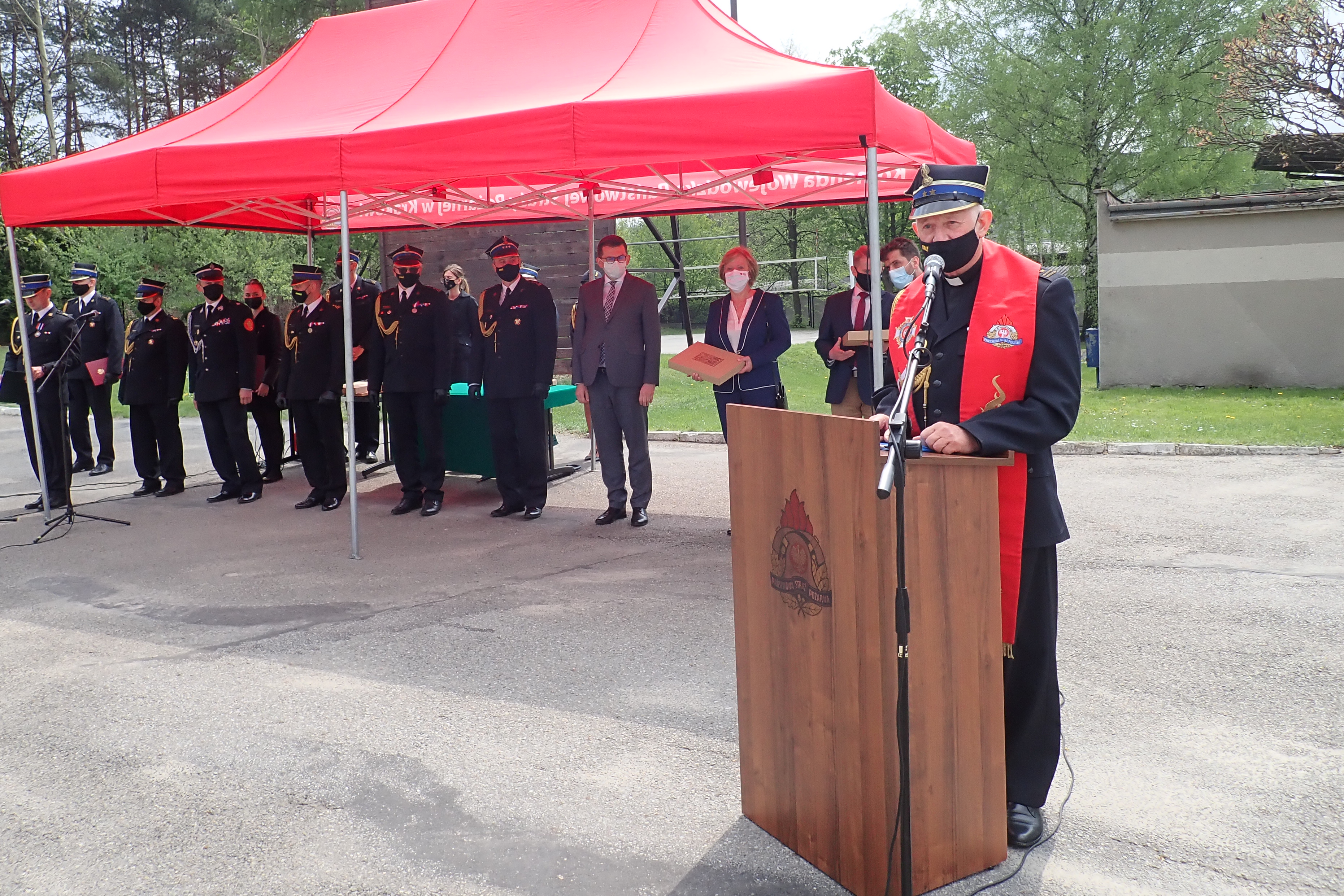 Uroczystość odbyła się w obecności: Pana Łukasza KMITY - Wojewody Małopolskiego, st. bryg. Piotra FILIPKA - Małopolskiego Komendanta Wojewódzkiego Państwowej Straży Pożarnej, Pana Michała ZASUCHY dyrektora biura poselskiego Pana Jacka OSUCHA – Sekretarza Stanu w Ministerstwie Dziedzictwa Narodowego, Kultury i Sportu, Pani Krystyny KOWALEWSKIEJ – Wicestarosty Powiatu Olkuskiego, Kapelana Małopolskich Strażaków - bryg. Władysława Kuliga oraz druha Grzegorza ZIARNO – Prezesa zarządu powiatowego Związku Ochotniczych Straży Pożarnych Rzeczypospolitej Polskiej w Olkuszu.