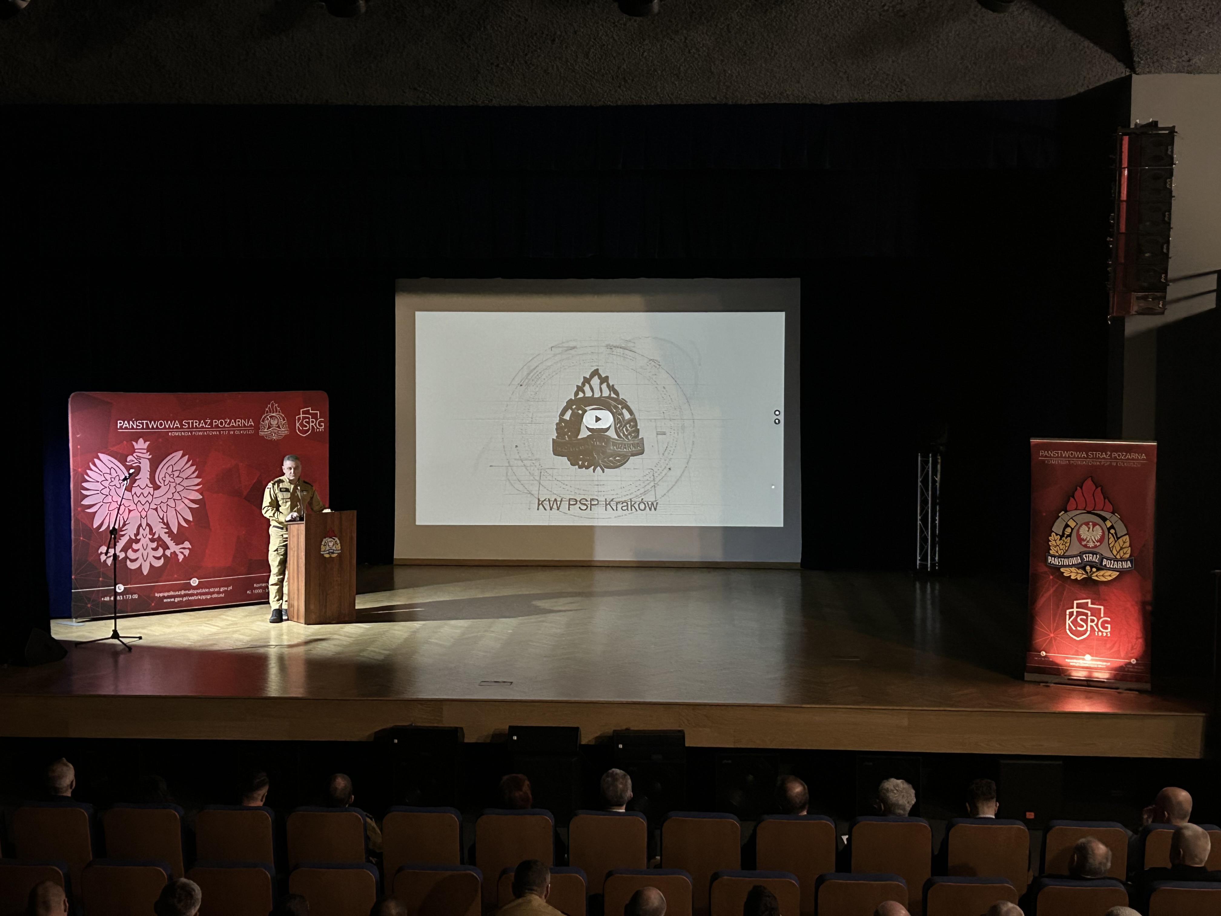 19 lutego 2026 roku w Domu Kultury „PAPIERNIK” w Kluczach odbyła się narada podsumowująca 2025 rok w Komendzie Powiatowej Państwowej Straży Pożarnej w Olkuszu. Podczas prezentacji przedstawiającej działalność Komendy Powiatowej PSP w Olkuszu, st. kpt. Mateusz Podsiadło Komendant Powiatowy PSP w Olkuszu podsumował 2025 rok w rozbiciu na poszczególne dziedziny, w obszarze których funkcjonuje Komenda Powiatowa Państwowej Straży Pożarnej w Olkuszu. Druga części spotkania to podsumowanie 2025 roku w perspektywie całego województwa małopolskiego wraz z planami na 2026 rok, które to podsumowanie przedstawił st. bryg. Michał Polak Zastępca Małopolskiego Komendanta Wojewódzkiego, jednocześnie dziękując strażakom za cały dotychczasowy wkład w zapewnienie bezpieczeństwa na terenie powiatu olkuskiego. Do słów podziękowań dołączyli się zaproszeni goście w osobach Lidii Gądek – Radnej Sejmiku Małopolskiego, Marcina Cockiewicza - Burmistrza Miasta Bukowno oraz Norberta Bienia – Wójta Gminy Klucze, a zarazem gospodarza miejsca.