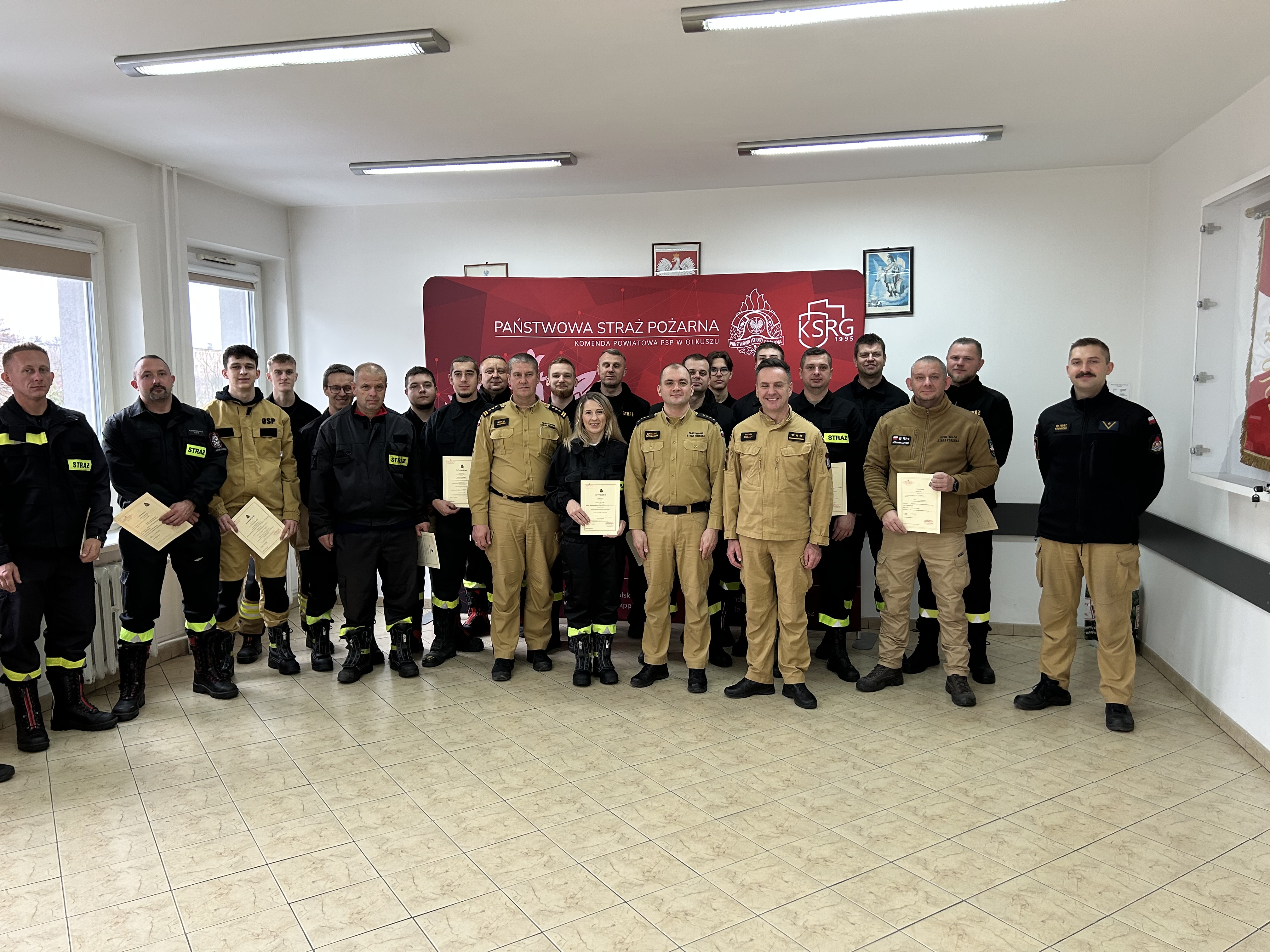 16 listopada 2025 roku zakończyło się kolejne w tym roku szkolenie podstawowe strażaka ratownika Ochotniczych Straży Pożarnych organizowane przez Komendę Powiatową Państwowej Straży Pożarnej w Olkuszu.