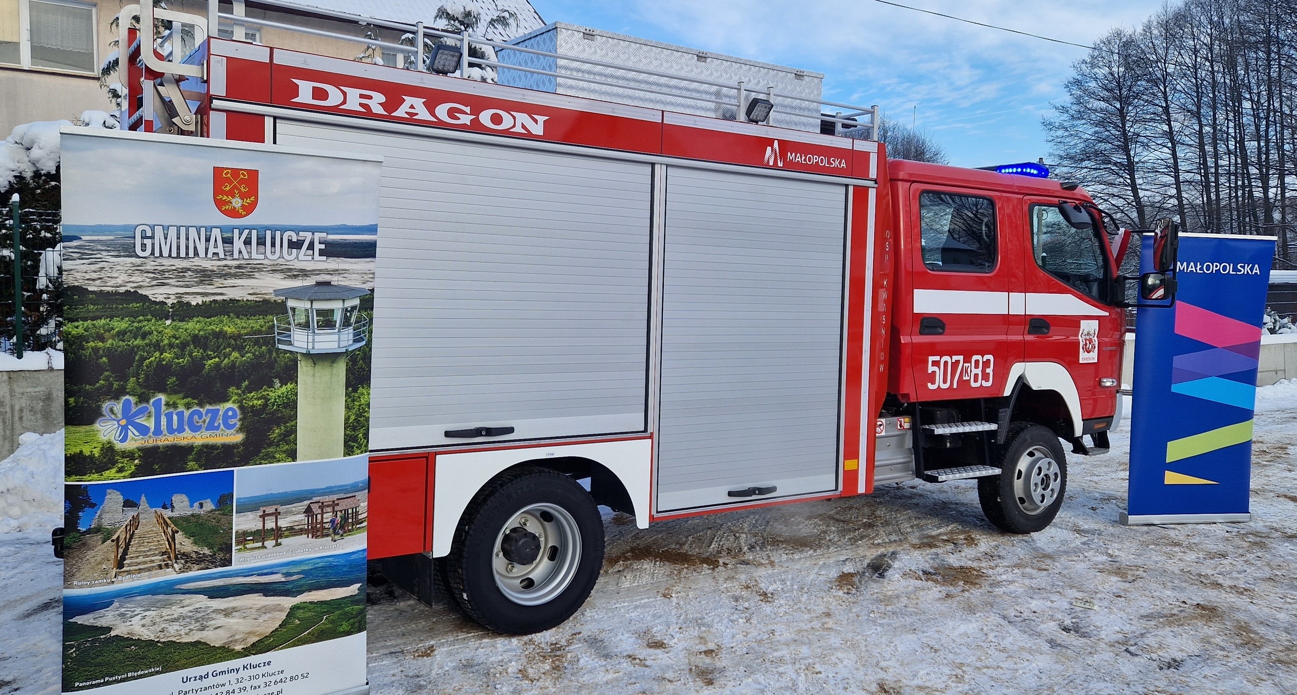 200.000 zł, 172.500 zł to środki własne Gminy Klucze, 20.000 zł pozyskano w ramach konkursu „Małopolskie remizy”, 5.000 zł to dotacja Starostwa Powiatowego w Olkuszu, a 2.500 zł to wsparcie Lasów Państwowych. W przekazaniu pojazdu udział wzięli m.in.: W imieniu Wojewody Małopolskiego Łukasza Kmity – Pan Andrzej Wójcik – Radny Województwa Małopolskiego oraz Pan Norbert Bień – Wójt Gminy Klucze.