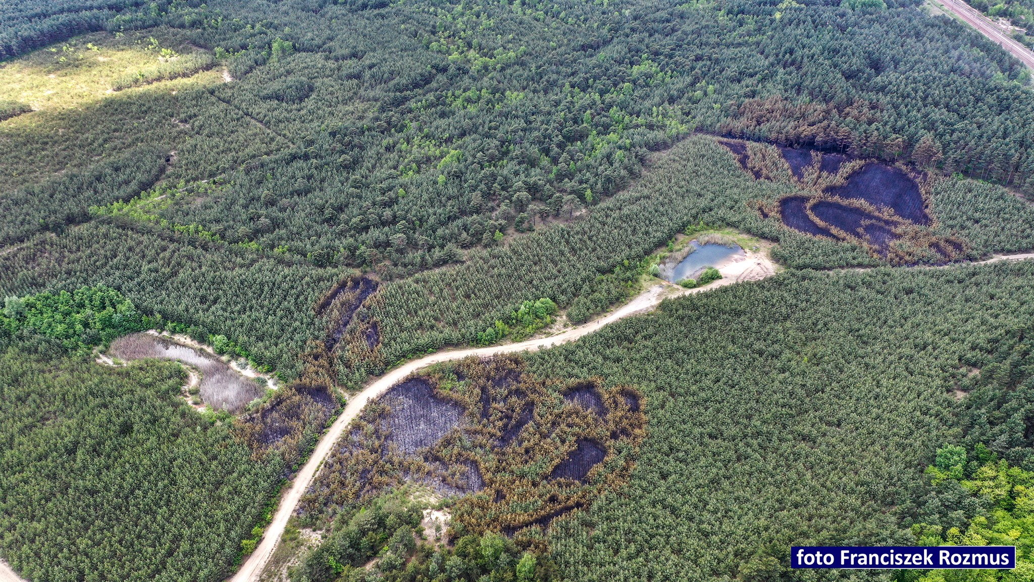 6 czerwca 2021 roku o godzinie 14:02 do Stanowiska Kierowania Komendanta Powiatowego Państwowej Straży Pożarnej w Olkuszu wpłynęło zgłoszenie o pożarze lasu w okolicy ulicy Żuradzkiej w Olkuszu. Po dojeździe na miejsce zdarzenia i przeprowadzeniu rozpoznania stwierdzono dwa ogniska pożaru poszycia leśnego oraz młodnika. Działania straży polegały na zabezpieczeniu miejsca zdarzenia poprzez niedopuszczenie osób postronnych, ustaleniu powierzchni pożaru oraz podaniu prądów gaśniczych na palące się poszycie leśne oraz młodnik. Podczas prowadzenia działań gaśniczych pojawiły się kolejne dwa ogniska pożaru, które gwałtownie się rozprzestrzeniały. Konieczne było zadysponowanie większej ilości sił i środków oraz utworzenie stanowiska do czerpania wody przy pobliskim zbiorniku wodnym oraz kanale rzecznym Baba. W działaniach uczestniczyły również trzy samoloty gaśnicze typu Dromader, które dokonały łącznie 20 zrzutów wody na teren pożaru. Po około 4 godzinach trwania akcji gaśniczej udało się ugasić wszystkie ogniska pożaru oraz skutecznie zatrzymać ich dalsze rozprzestrzenianie. W wyniku pożaru spaleniu uległo około 3 ha młodnika sosnowego wraz z poszyciem. Służby leśne wyceniły straty na kwotę 24 000 PLN. Prawdopodobną przyczyną powstania pożaru było podpalenie. W działaniach udział brały 4 zastępy z Jednostki Ratowniczo-Gaśniczej PSP w Olkuszu, 1 zastęp z Jednostki Ratowniczo-Gaśniczej PSP w Wolbromiu, 23 zastępy Ochotniczych Straży Pożarnych, Policja oraz Służba Leśna. Na miejscu zdarzenia obecna była również Grupa Operacyjna Komendanta Powiatowego PSP w Olkuszu oraz Oficer operacyjny z Komendy Wojewódzkiej PSP w Krakowie.