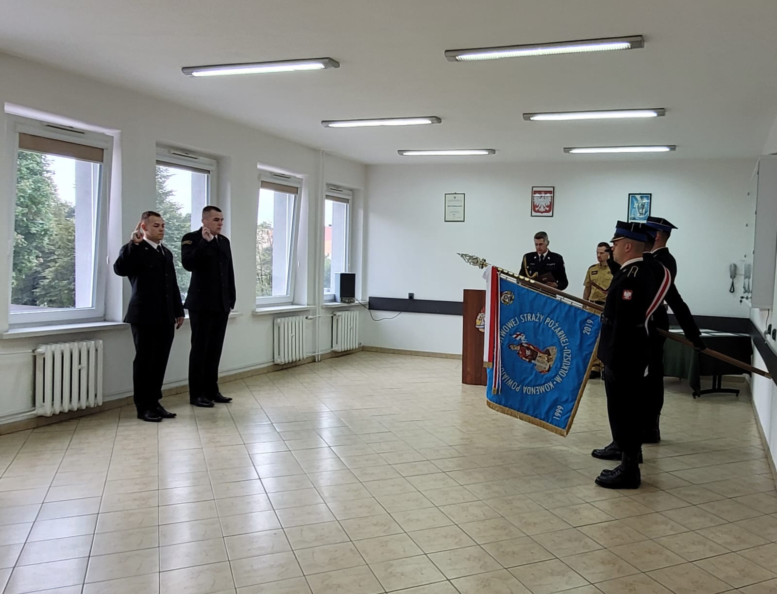 Dnia 25 sierpnia 2023 roku w Komendzie Powiatowej PSP w Olkuszu odbyła się uroczysta zbiórka połączona ze ślubowaniem dwóch nowo przyjętych strażaków w szeregi Państwowej Straży Pożarnej.