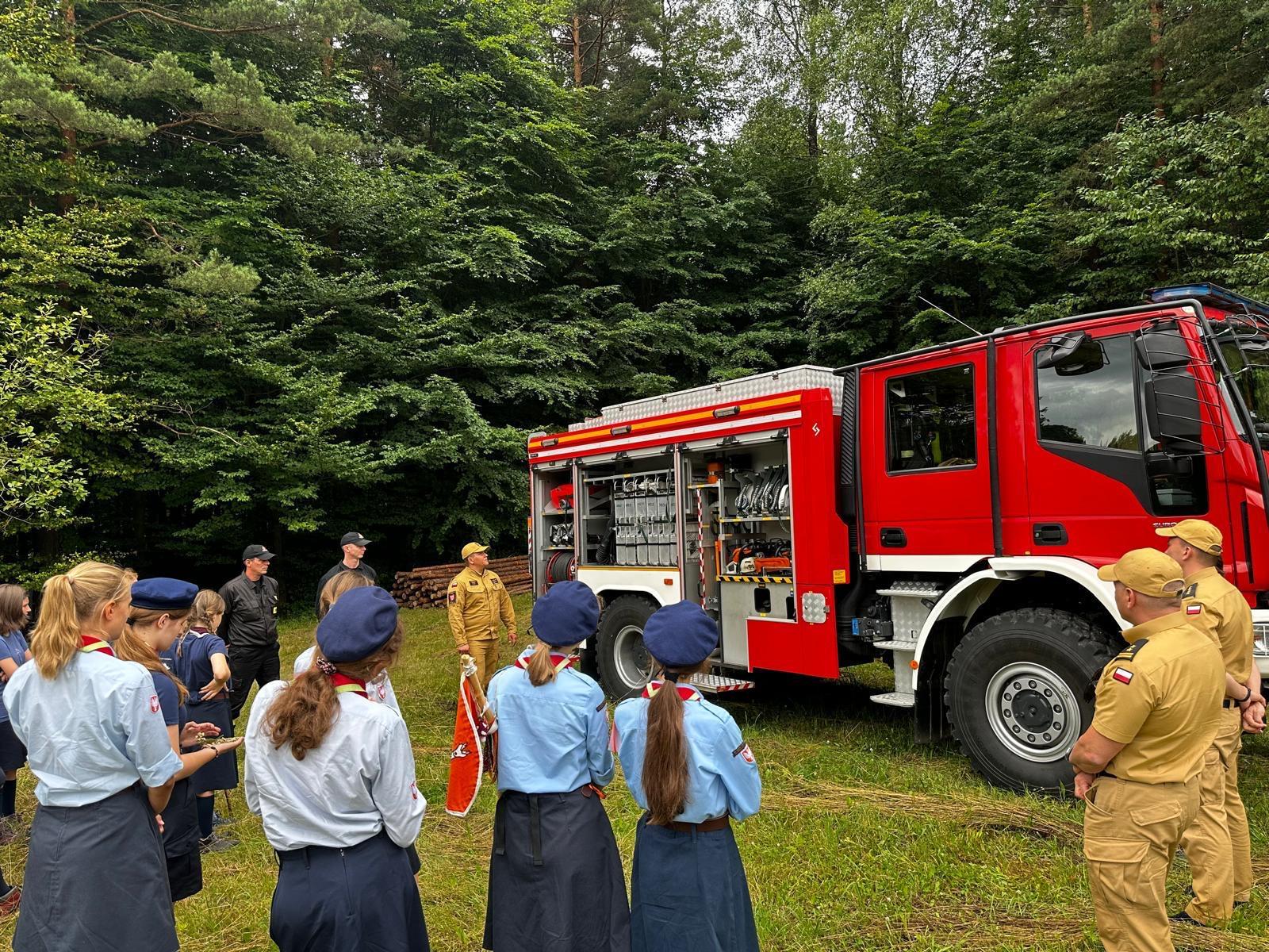 Wizyta strażaków odbyła się w ramach porozumienia pomiędzy Komendą Główną PSP, a centralami organizacji harcerskich w celu podniesienia bezpieczeństwa wypoczywających w okresie wakacyjnym harcerzy.