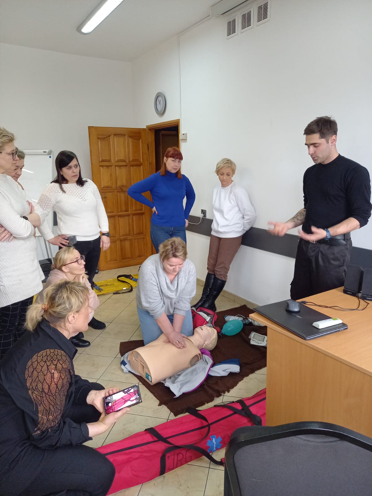 W dniu 18 lutego 2023 roku w Komendzie Powiatowej PSP w Olkuszu odbyło się spotkanie ze słuchaczkami szkoły policealnej przy Zespole Szkół nr 1 w Olkuszu, uczącymi się na kierunku Opiekun Medyczny. Nasi strażacy zapoznali uczestniczki spotkania z wyposażeniem pojazdów pożarniczych przeznaczonym do udzielania kwalifikowanej pierwszej pomocy oraz w formie szkolenia przekazali wiedzę teoretyczną podpierając ją praktycznym ćwiczeniami w przedmiotowym temacie wykorzystując fantomy i sprzęt będący na wyposażeniu Jednostki Ratowniczo Gaśniczej w Olkuszu.