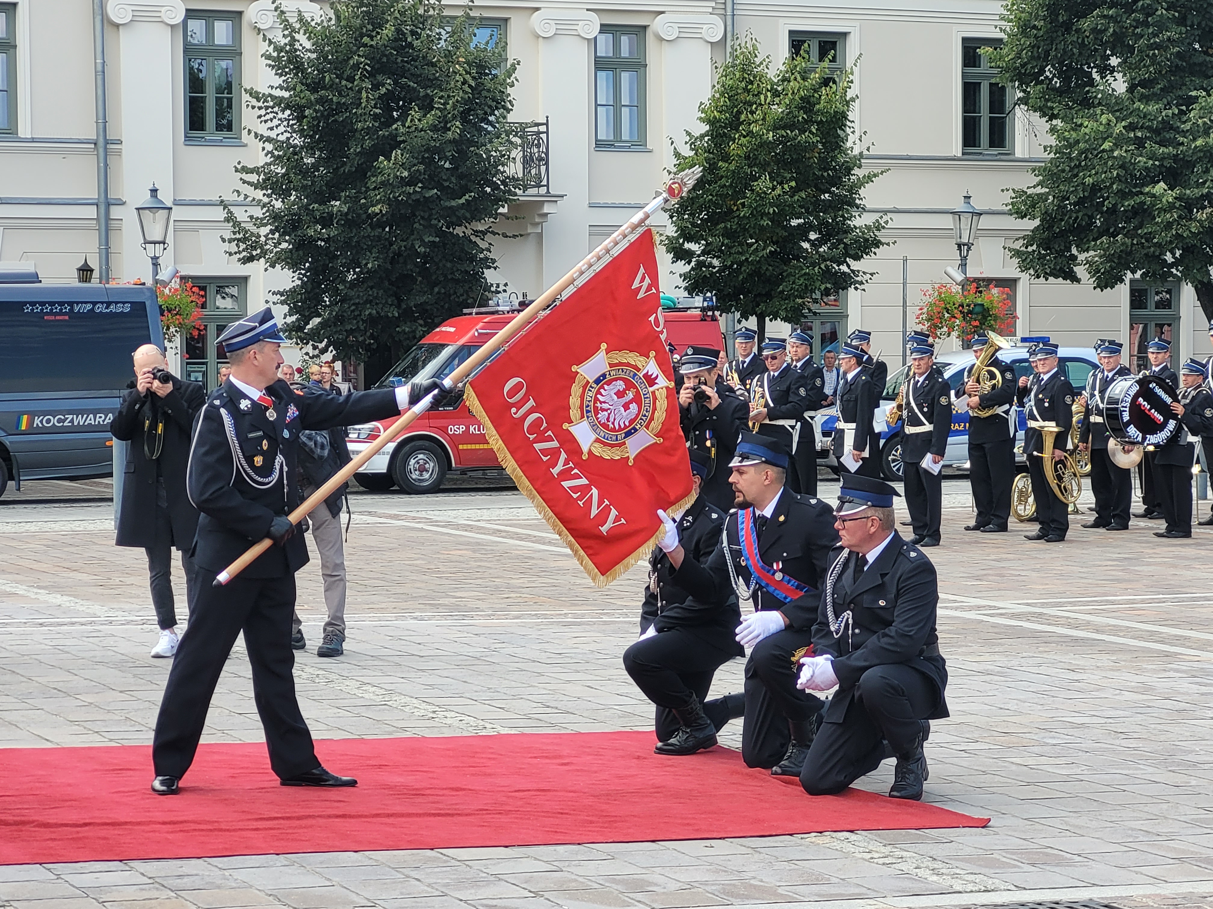 W niedzielę 29 sierpnia na płycie olkuskiego rynku odbyło się uroczyste poświęcenie oraz przekazanie sztandaru dla Oddziału Powiatowego Związku Ochotniczych Straży Pożarnych RP w Olkuszu, jako dowód uznania i wdzięczności społeczeństwa Powiatu olkuskiego, ku chwale Tych, którzy na co dzień nie szczędzą sił dla ratowania życia, zdrowia i mienia. W uroczystości uczestniczył Małopolski Komendant Wojewódzki st. bryg. Piotr Filipek, a aktu poświęcenia sztandaru dokonał Kapelan małopolskich strażaków ks. bryg. Władysław Kulig.