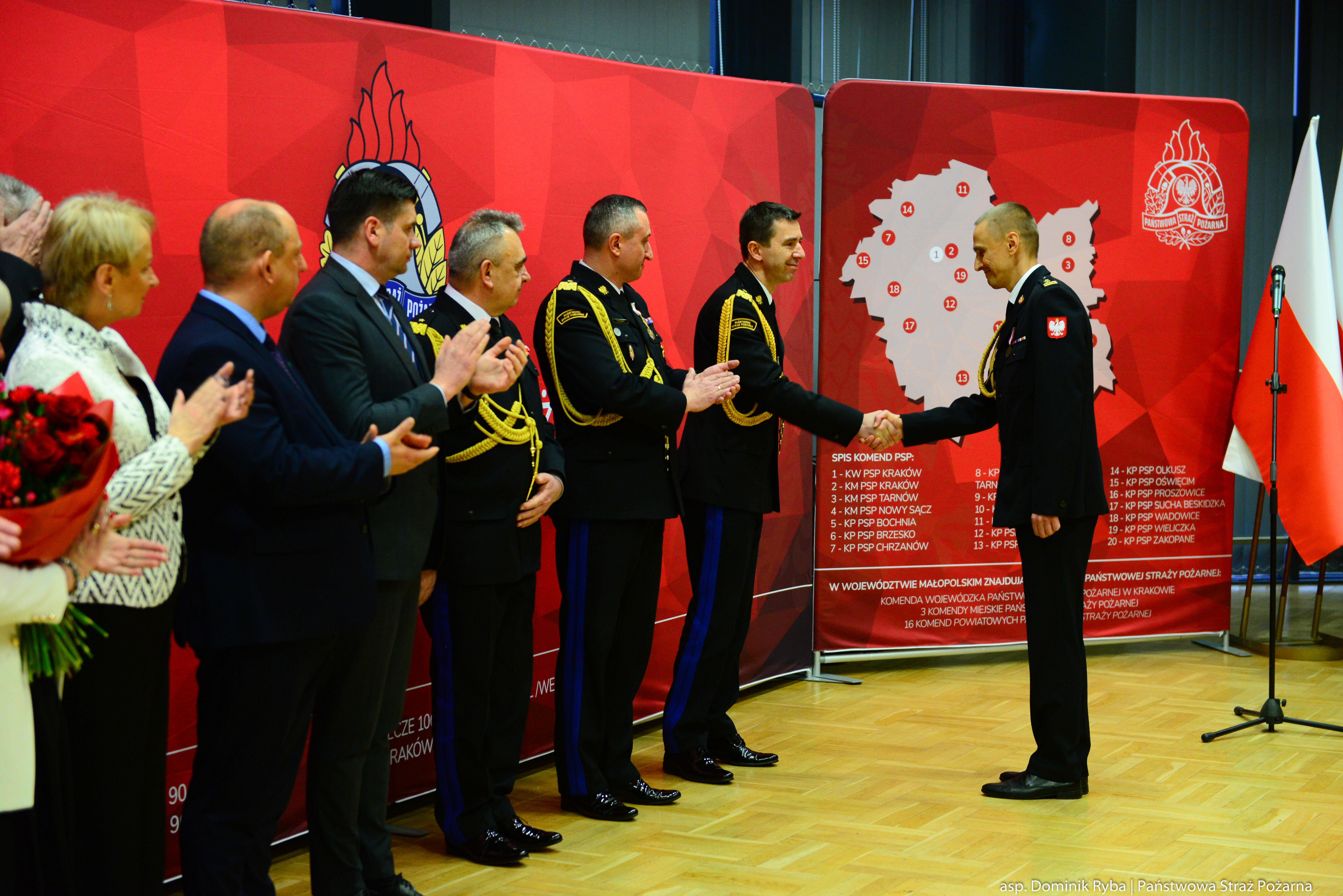 W ceremonii uczestniczyli parlamentarzyści z terenu województwa małopolskiego, Wojewoda Małopolski Krzysztof Jan Klęczar, przedstawiciele samorządu terytorialnego, służb mundurowych oraz instytucji współpracujących z Państwową Strażą Pożarną, Komendanci Miejscy i Powiatowi PSP, funkcjonariusze i pracownicy Komendy Wojewódzkiej PSP w Krakowie.