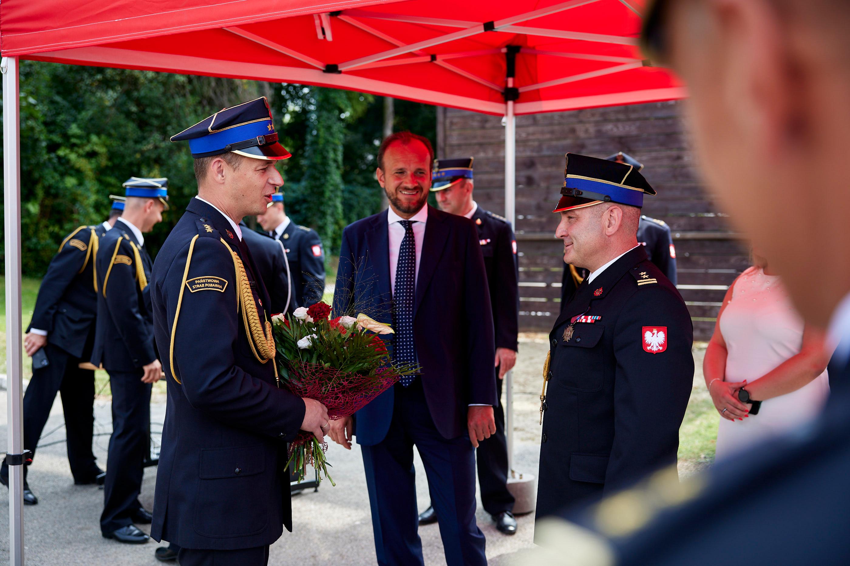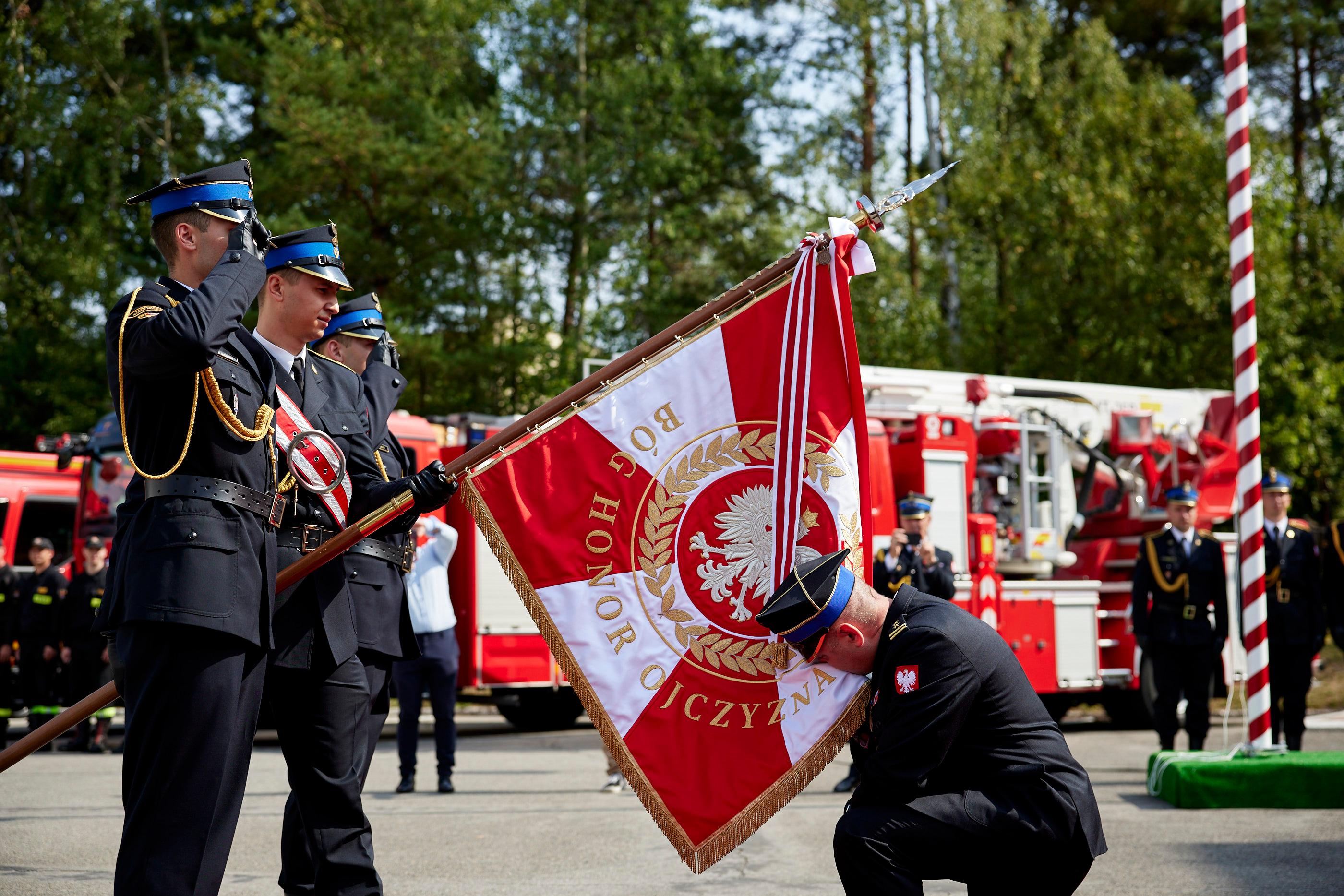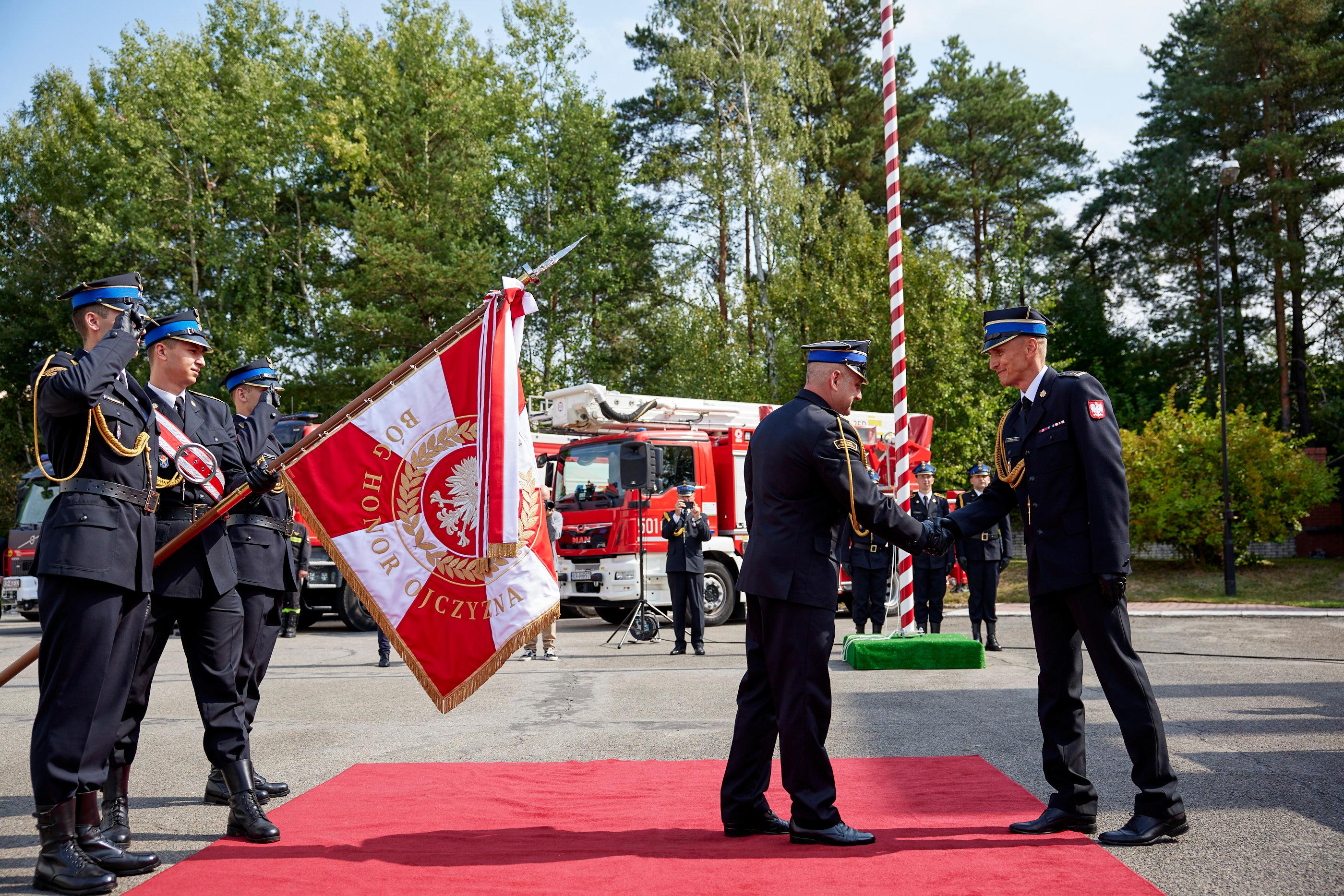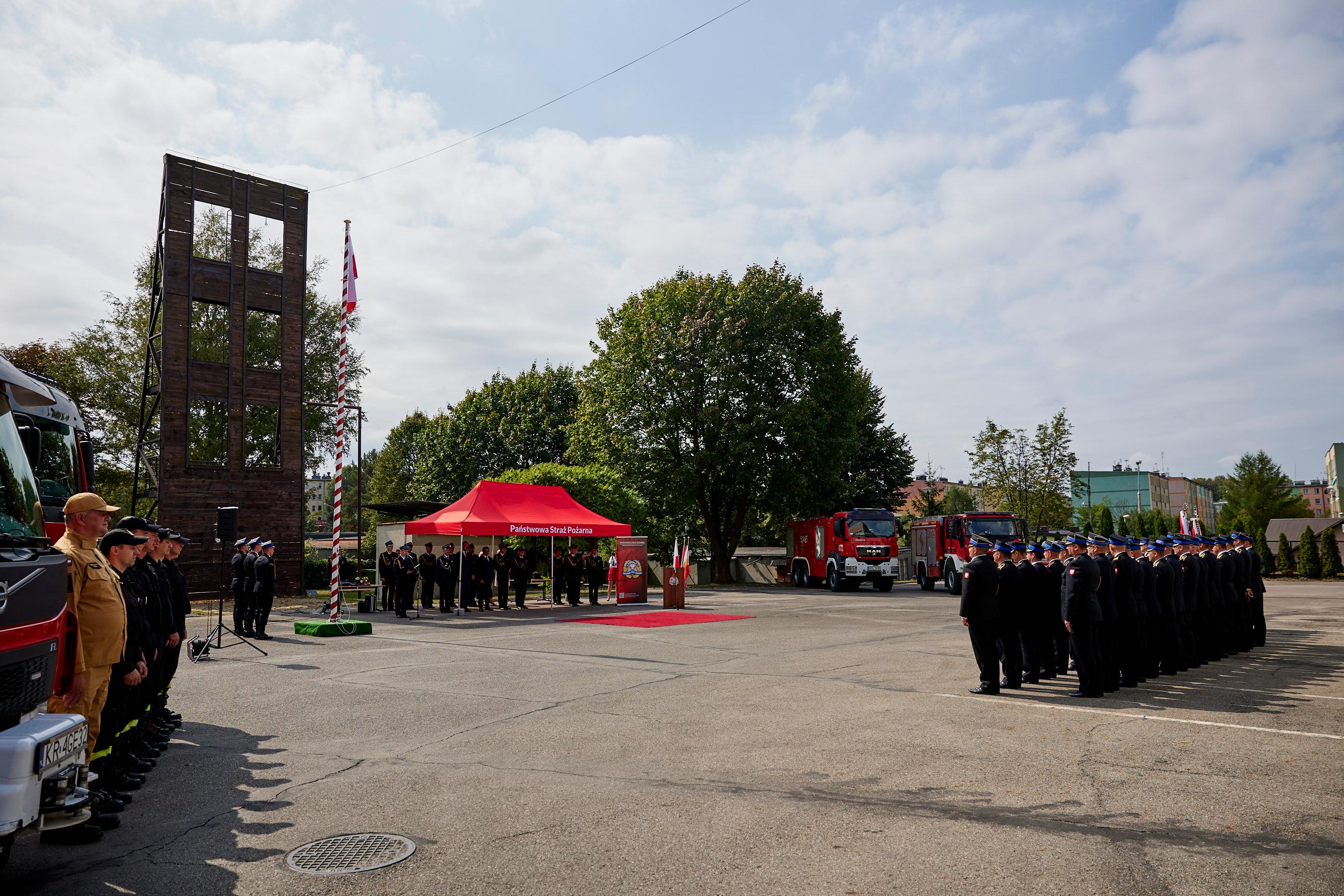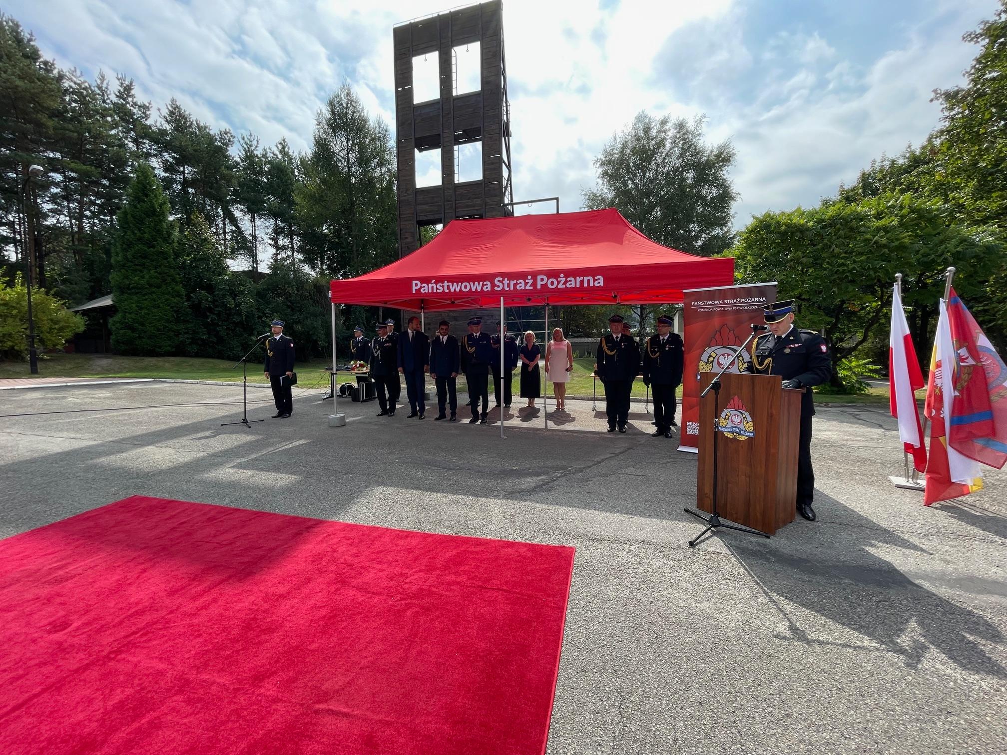 27 sierpnia 2024 roku na terenie Komendy Powiatowej Państwowej Straży Pożarnej w Olkuszu odbył się uroczysty apel z okazji powołania na stanowisko Komendanta Powiatowego PSP w Olkuszu bryg. Michała Polaka. Apel rozpoczął się złożeniem meldunku Małopolskiemu Komendantowi Wojewódzkiemu Państwowej Straży Pożarnej bryg. Przemysławowi Przęczkowi oraz oddaniem hołdu minutą ciszy, tragicznie zmarłym strażakom w miniony weekend podczas pożaru w Poznaniu. Zgodnie z ceremoniałem pożarniczym centralnym punktem apelu było przywitanie się nowego Komendanta ze sztandarem Komendy Powiatowej PSP w Olkuszu oraz złożeniem meldunku do Małopolskiego Komendanta Wojewódzkiego PSP o objęciu powierzonego stanowiska. Wśród zaproszonych gości, na apelu pojawili się: II Wicewojewoda Małopolski Ryszard Śmiałek, Małopolski Komendant Wojewódzki PSP w Krakowie bryg. Przemysław Przęczek, Starosta Olkuski Bogumił Sobczyk oraz Prezes Zarządu Powiatowego Związku Ochotniczych Straży Pożarnych RP w Olkuszu dh Grzegorz Ziarno.