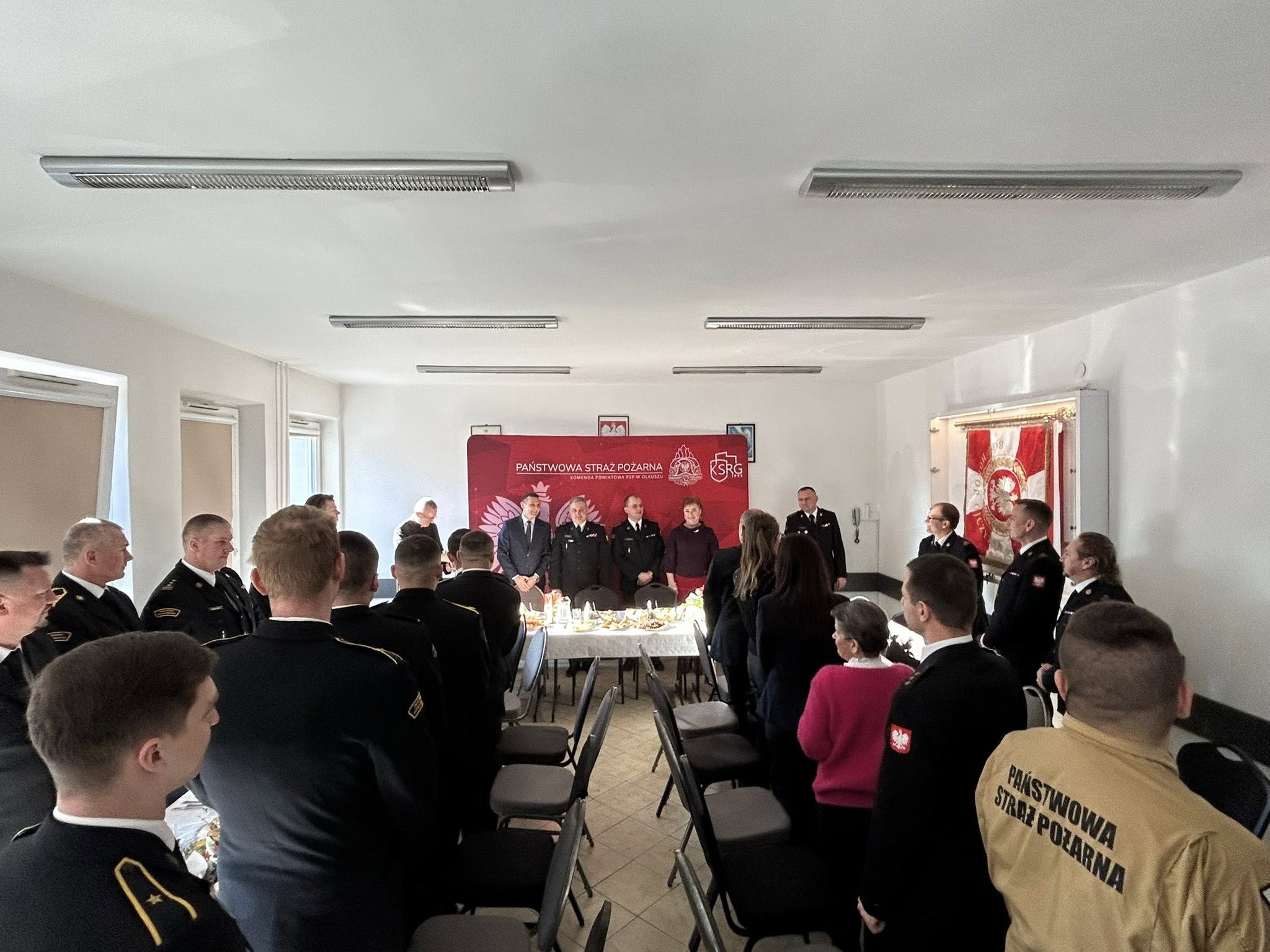 19 grudnia 2025 roku w Komendzie Powiatowej PSP w Olkuszu odbyło się tradycyjne spotkanie wigilijne, które zgromadziło funkcjonariuszy, pracowników cywilnych naszej komendy oraz zaproszonych gości w osobach:
