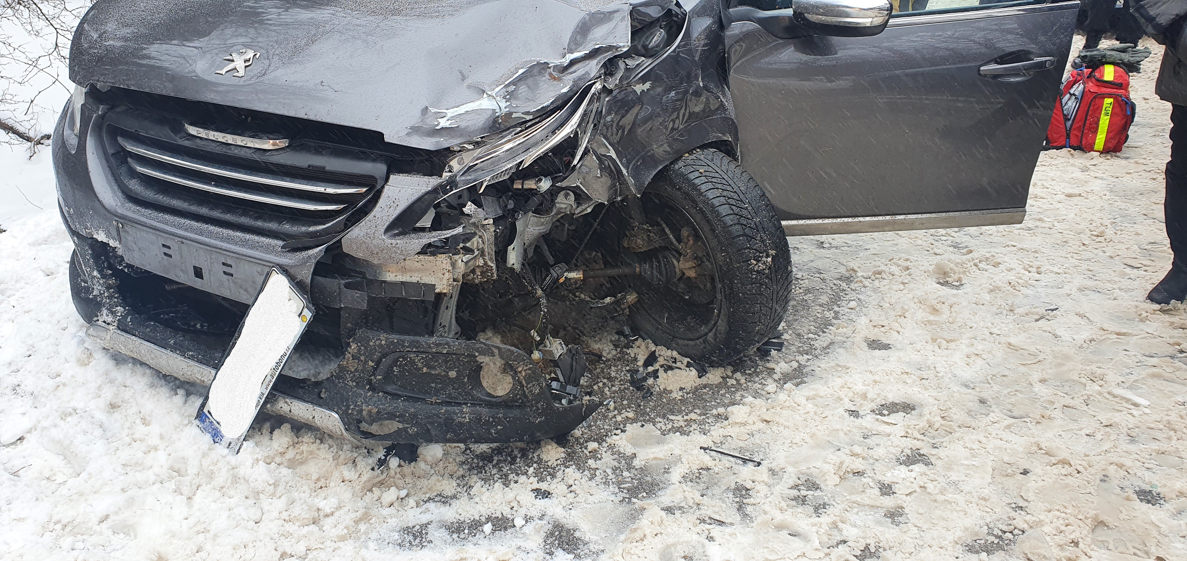 W dniu 08.02.2021 r. o godzinie 14:24, Dyżurny Stanowiska Kierowania Komendanta Powiatowego w Olkuszu odebrał zgłoszenie o wypadku samochodów osobowych w miejscowości Rabsztyn. Po przybyciu na miejsce zdarzenia strażacy zastali zderzenie dwóch samochodów osobowych, którymi łącznie podróżowało cztery osoby w tym matka i jej 3-letnie dziecko. Pasażer jednego z pojazdów przebywał w pojeździe i uskarżał się na ból lewej nogi. Pozostali uczestnicy zdarzenia przebywali poza pojazdami bez obrażeń. Ratownicy zabezpieczyli miejsce zdarzenia, odłączyli akumulatory w pojazdach oraz ewakuowali poszkodowanego mężczyznę z pojazdu, który został przekazany obecnemu na miejscu Zespołowi Ratownictwa Medycznego. Obecny na miejscu kierownik Zespołu Ratownictwa Medycznego zadecydował również o przewiezieniu dziecka wraz z matką do Szpitalnego Oddziału Ratunkowego w Olkuszu. W trakcie trwających 90 minut działań ratowniczych droga była zablokowana. Po zakończeniu czynności przez Policję uszkodzone pojazdy zostały zabrane przez pomoc drogową. Prawdopodobną przyczyną wypadku było niedostosowanie prędkości jazdy przez jednego z kierowców do bardzo trudnych warunków panujących na drodze w związku z intensywnymi opadami śniegu, które nawiedziły nasz powiat w ciągu ostatnich dni. Na miejsce działań przybyła Grupa Operacyjna Komendy Powiatowej Państwowej Straży Pożarnej w Olkuszu w składzie Zastępca Komendanta Powiatowego, Dowódca Jednostki Ratowniczo-Gaśniczej w Olkuszu i Zastępca Dowódcy Jednostki Ratowniczo-Gaśniczej w Olkuszu.