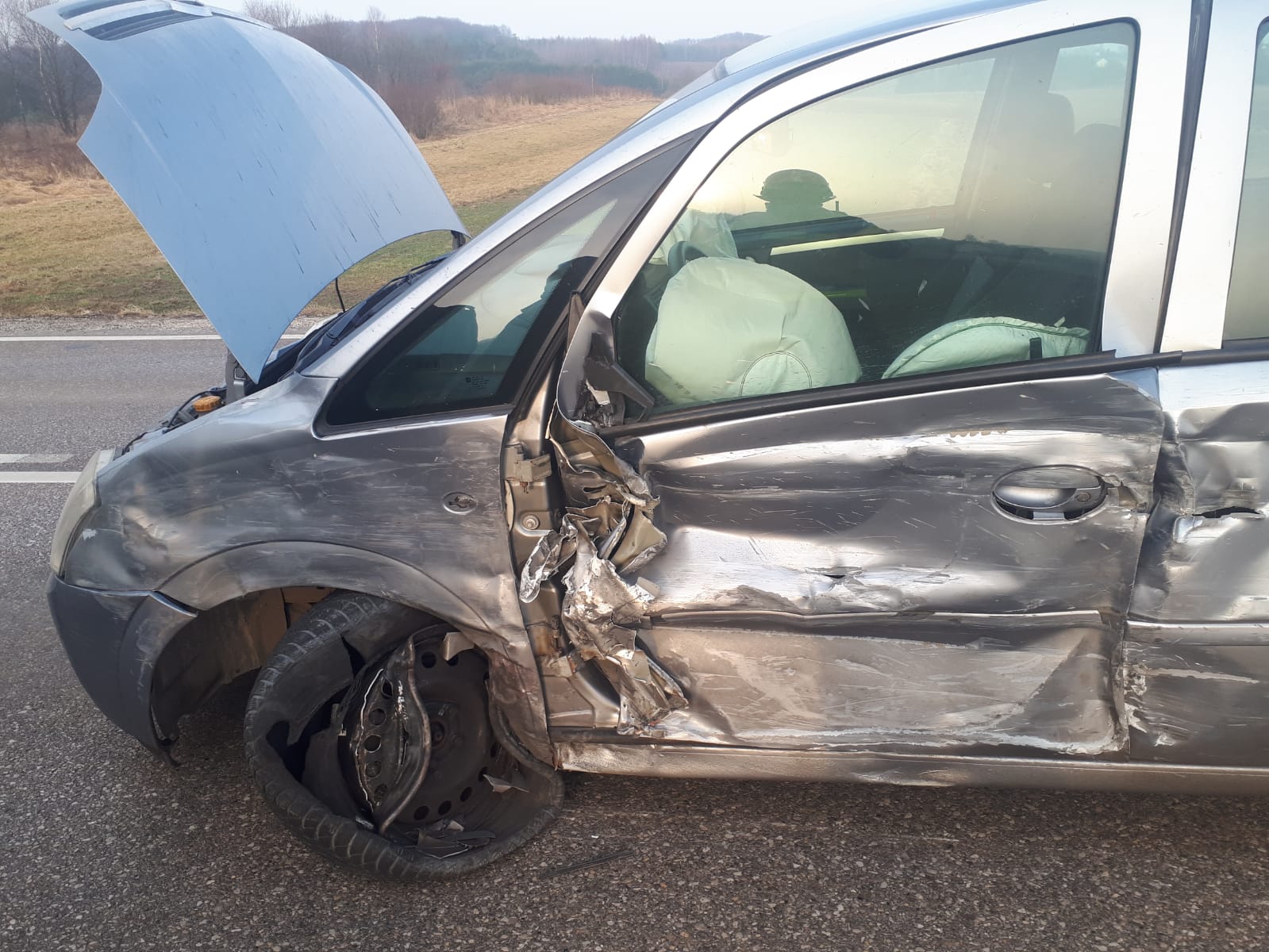 W dniu 4.03.2021 r. o godzinie 6:57, Dyżurny Stanowiska Kierowania Komendanta Powiatowego w Olkuszu odebrał zgłoszenie o wypadku dwóch samochodów osobowych w miejscowości Chełm na drodze wojewódzkiej nr 794. Po przybyciu na miejsce zdarzenia strażacy stwierdzili zderzenie dwóch samochodów osobowych, osoby podróżujące samochodami (kierowcy) samodzielnie opuścili pojazdy. Działania straży pożarnej polegały na zabezpieczeniu miejsca zdarzenia przed dostępem osób postronnych, ustawieniu słupków drogowych na długości 150 m, kierowaniu ruchem wahadłowo i odłączeniu akumulatorów w uszkodzonych pojazdach. Jednocześnie udzielono kierującej samochodem Opel Meriva kwalifikowanej pomocy przedmedycznej (badanie urazowe, wsparcie psychiczne). Kierowca BMW nie wymagał udzielenia kwalifikowanej pomocy przedmedycznej. Po przebadaniu przez przybyły na miejsce zdarzenia personel Zespołu Ratownictwa Medycznego kierującą samochodem Oplem Meriva nie wymagała hospitalizacji.