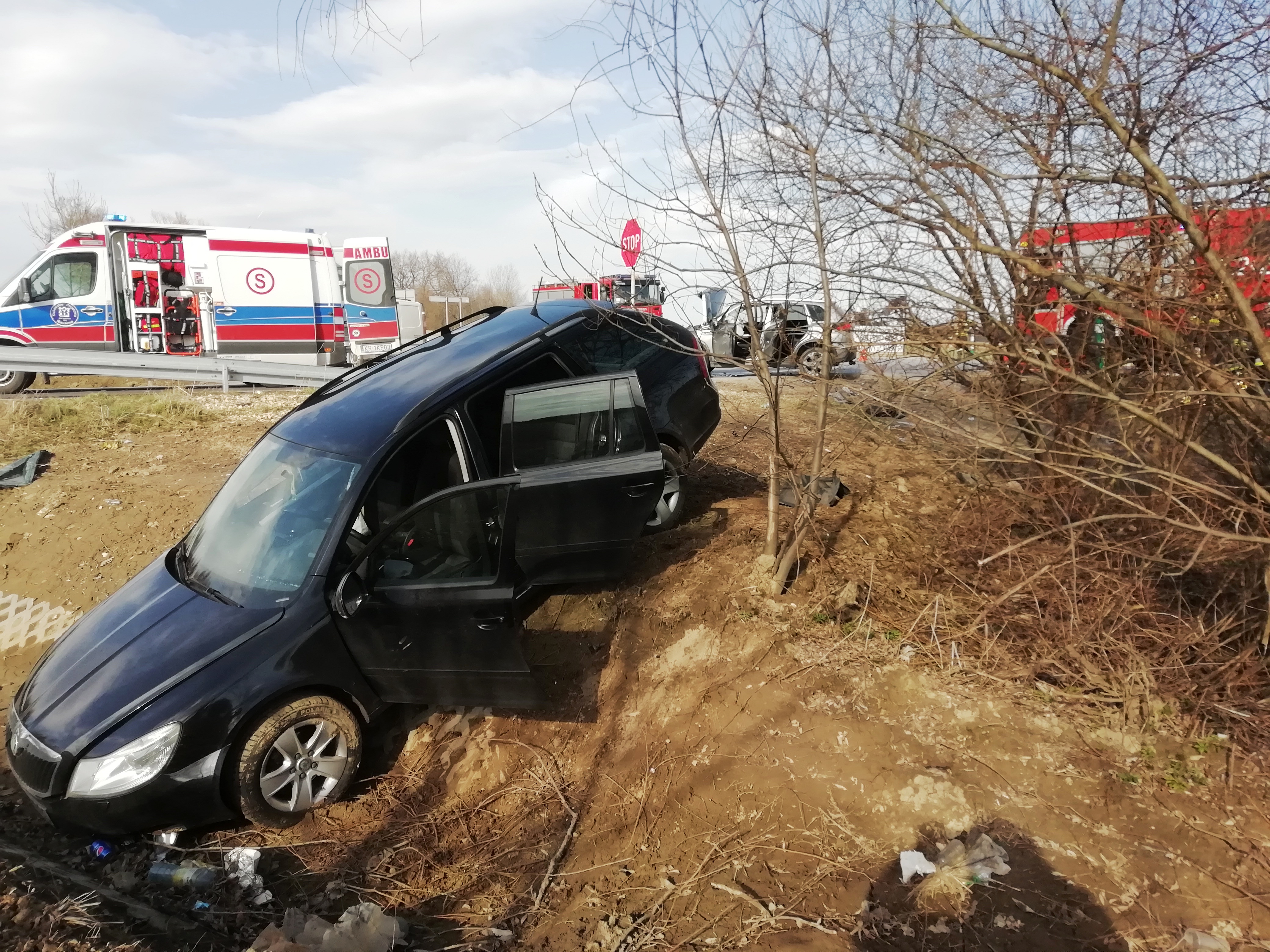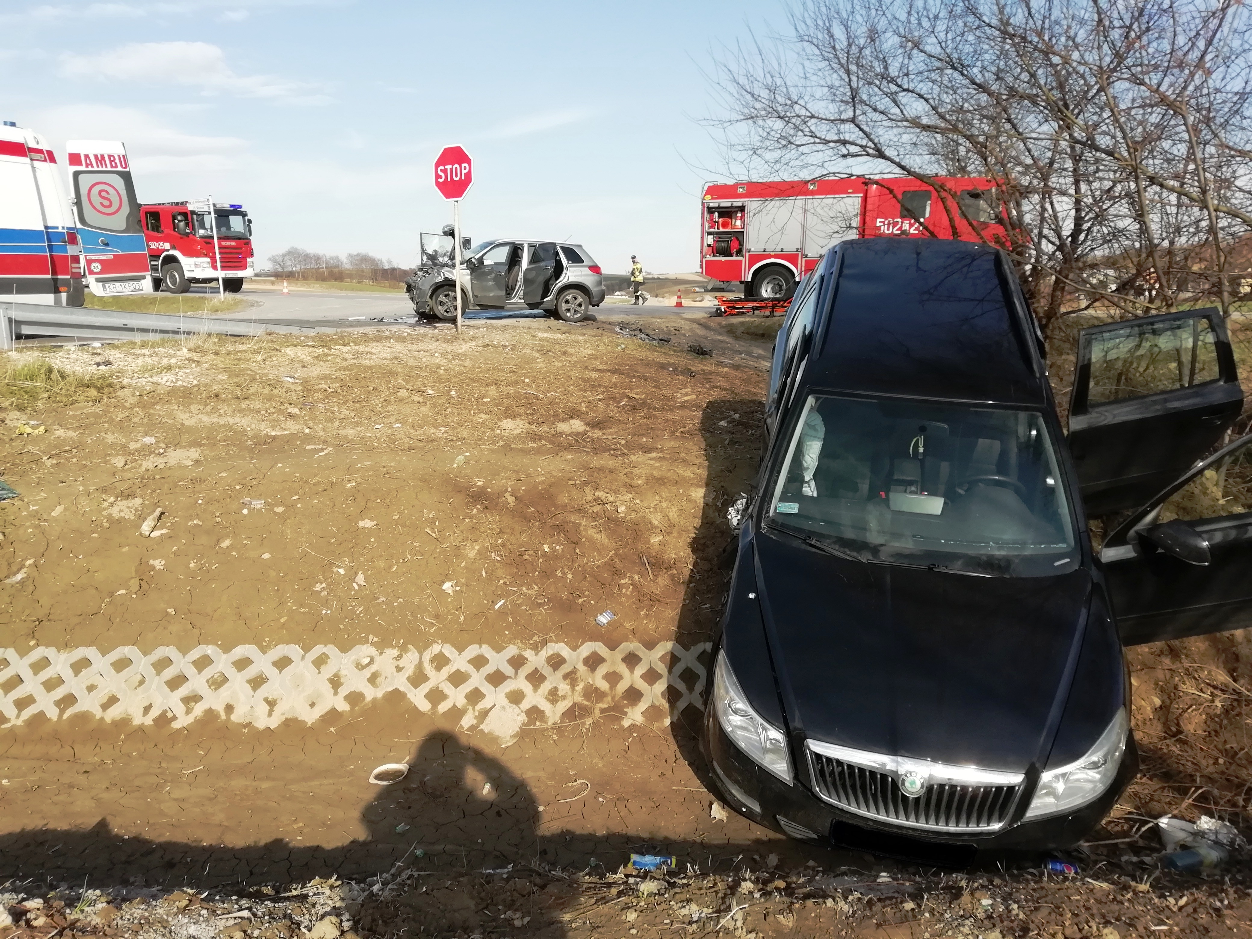 W dniu 10 kwietnia 2021 r. o godzinie 16:23, Dyżurny Stanowiska Kierowania Komendanta Powiatowego w Olkuszu otrzymał zgłoszenie o wypadku dwóch samochodów osobowych w miejscowości Sucha na drodze wojewódzkiej nr 794. Po przybyciu na miejsce zdarzenia strażacy stwierdzili zderzenie dwóch samochodów osobowych, w których podróżowało po dwie osoby, mężczyzna podróżujący jednym z samochodów leży na poboczu pod opieką świadków i uczestników zdarzenia, pozostałe osoby biorące udział w zdarzeniu nie uskarżają się na żadne dolegliwości i nie chcą aby udzielona im została pomoc medyczna, Policja na miejscu. Działania strażaków polegały na: udzieleniu Kwalifikowanej Pomocy Przedmedycznej poszkodowanemu mężczyźnie (wykonano stabilizację odcinka szyjnego kręgosłupa, wywiad ratowniczy, wstępne badanie urazowe, wsparcie psychiczne), następnie przekazano rannego Zespołowi Ratownictwa Medycznego , który zabrał mężczyznędo szpitala, zabezpieczeniu miejsca zdarzenia za pomocą lamp i pachołków ostrzegawczych, odłączeniu akumulatorów w pojazdach, zabezpieczeniu wyciek płynów z samochodu i kierowaniu wahadłowo ruchem pojazdów na drodze wojewódzkiej jak i powiatowej w kierunku Gołaczew. Przyczyną wypadku było wymuszenie pierwszeństwa przejazdu przez kierującego jednym z pojazdów. W działaniach udział brały 2 zastępy straży pożarnej z Jednostki Ratowniczo-Gaśniczej PSP w Wolbromiu, 2 radiowozy Policji, Zespół Ratownictwa Medycznego i 2 samochody pomocy drogowej.