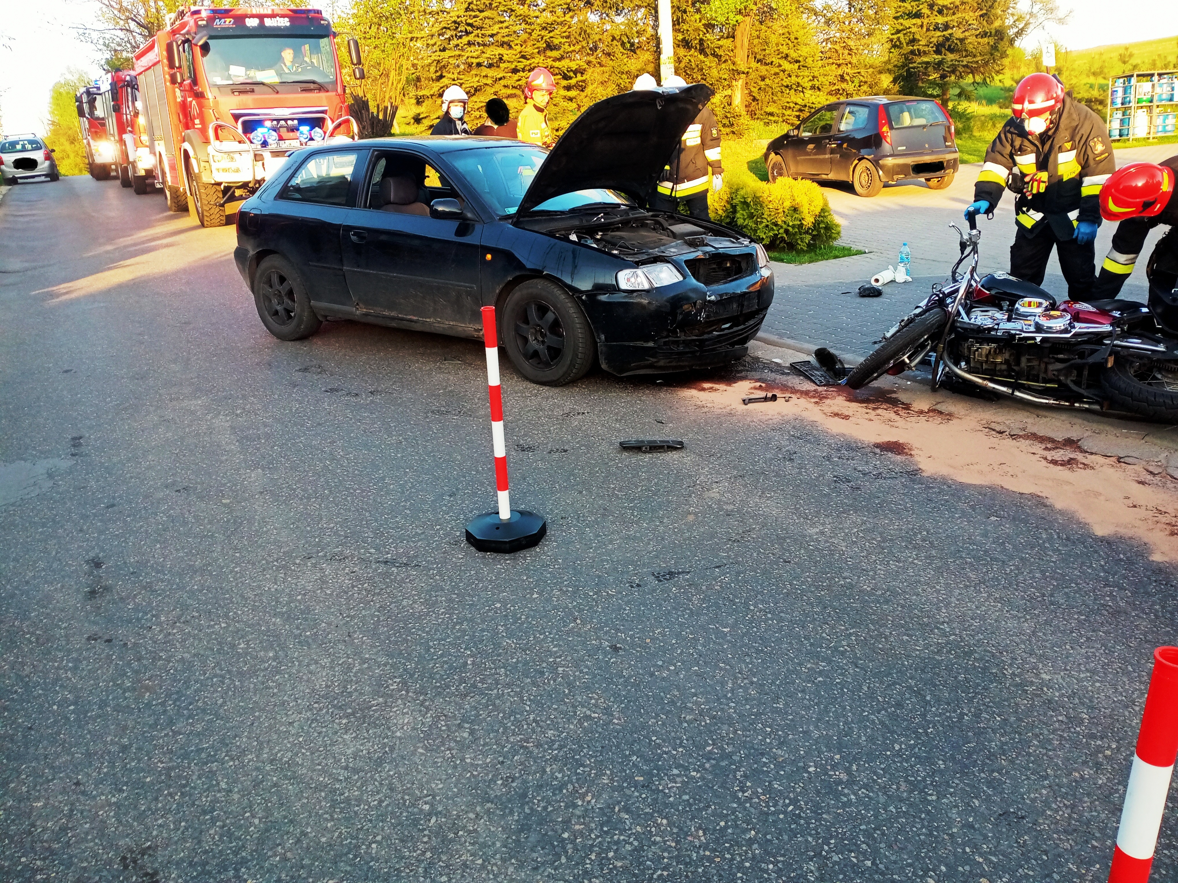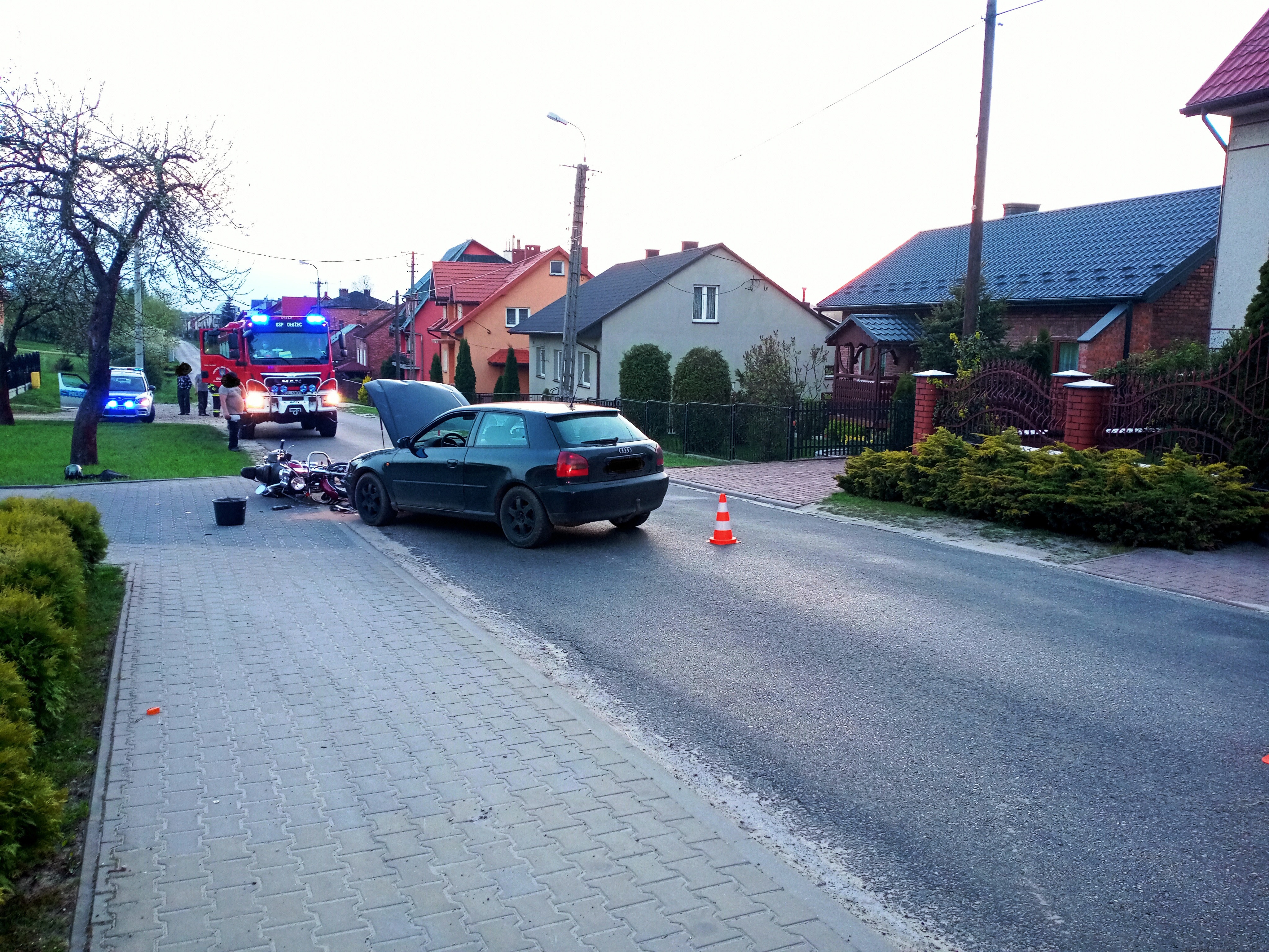 Wypadek samochodu osobowego i motocykla w miejscowości Dłużec